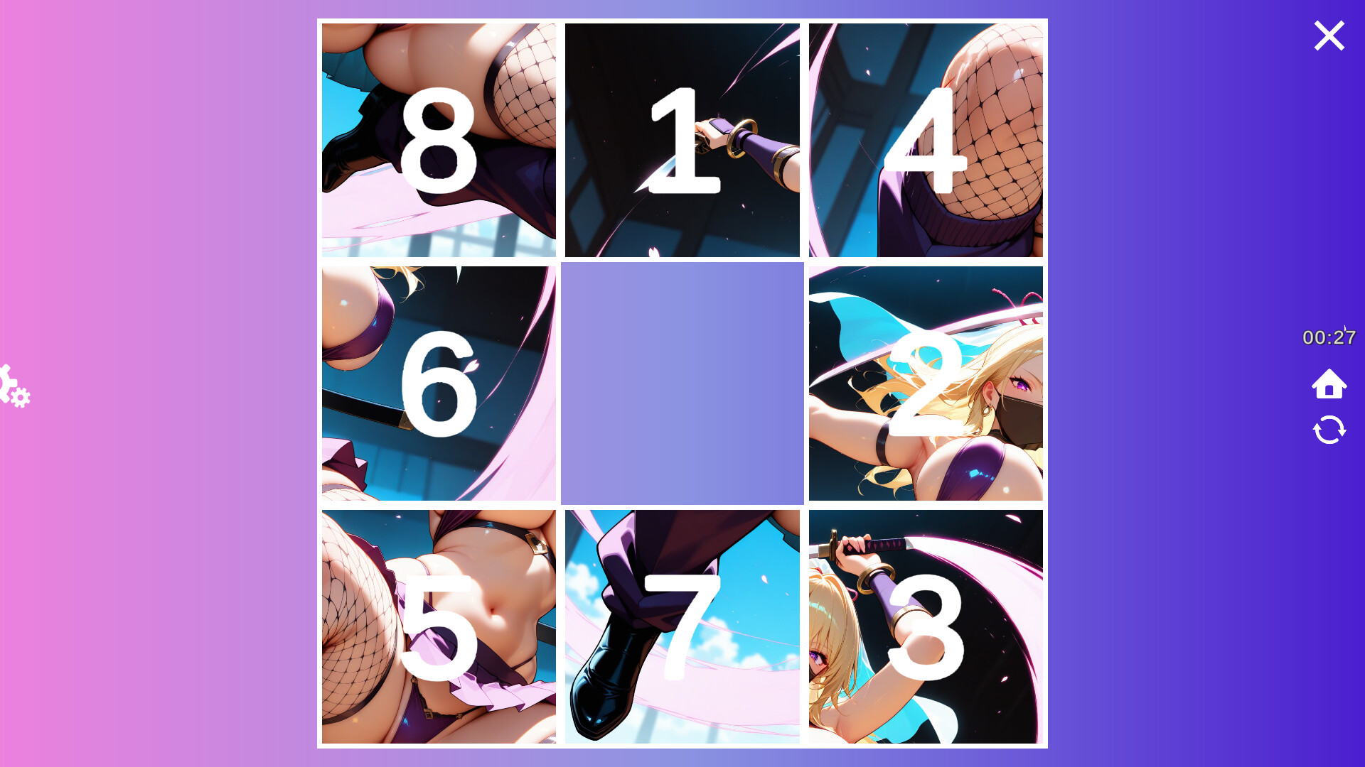 Sexy shinobi puzzle game. Solve 15-puzzle, swipe and rotate modes to reveal spicy art. Two difficulties and soothing music.