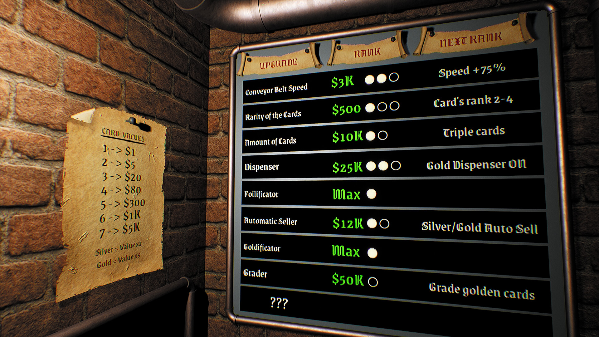 Collect cards, mix them, watch them rise their rank, sell for gold, and invest in upgrades. Stack, mix, sell and repeat... BULK Demo includes a small sample of the content that awaits you in your new job