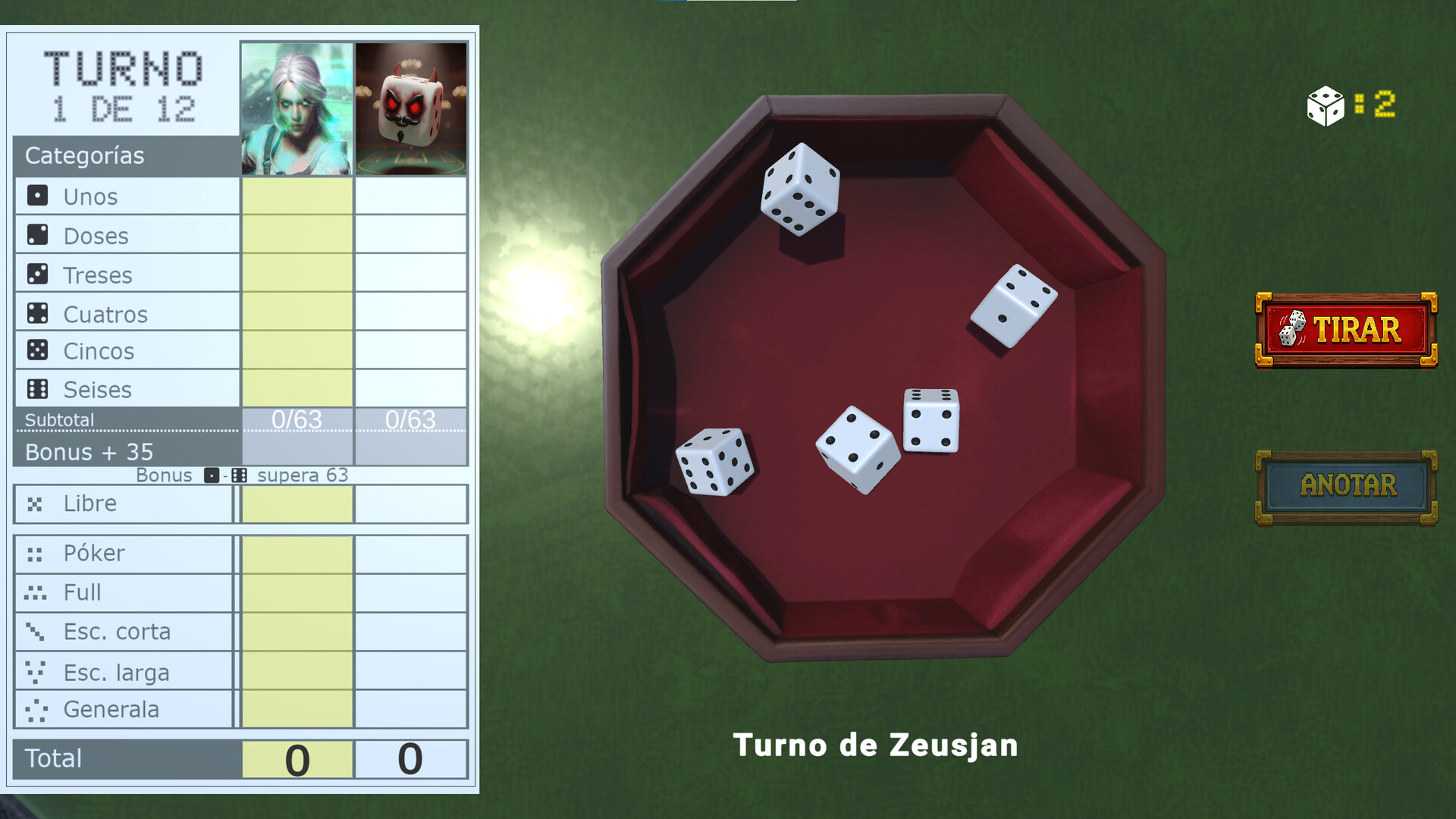 • Interfaz Clara: Ayudas visuales para saber qué dados seleccionar, cuántos puntos obtendrías en cada categoría y cuántos turnos quedan.