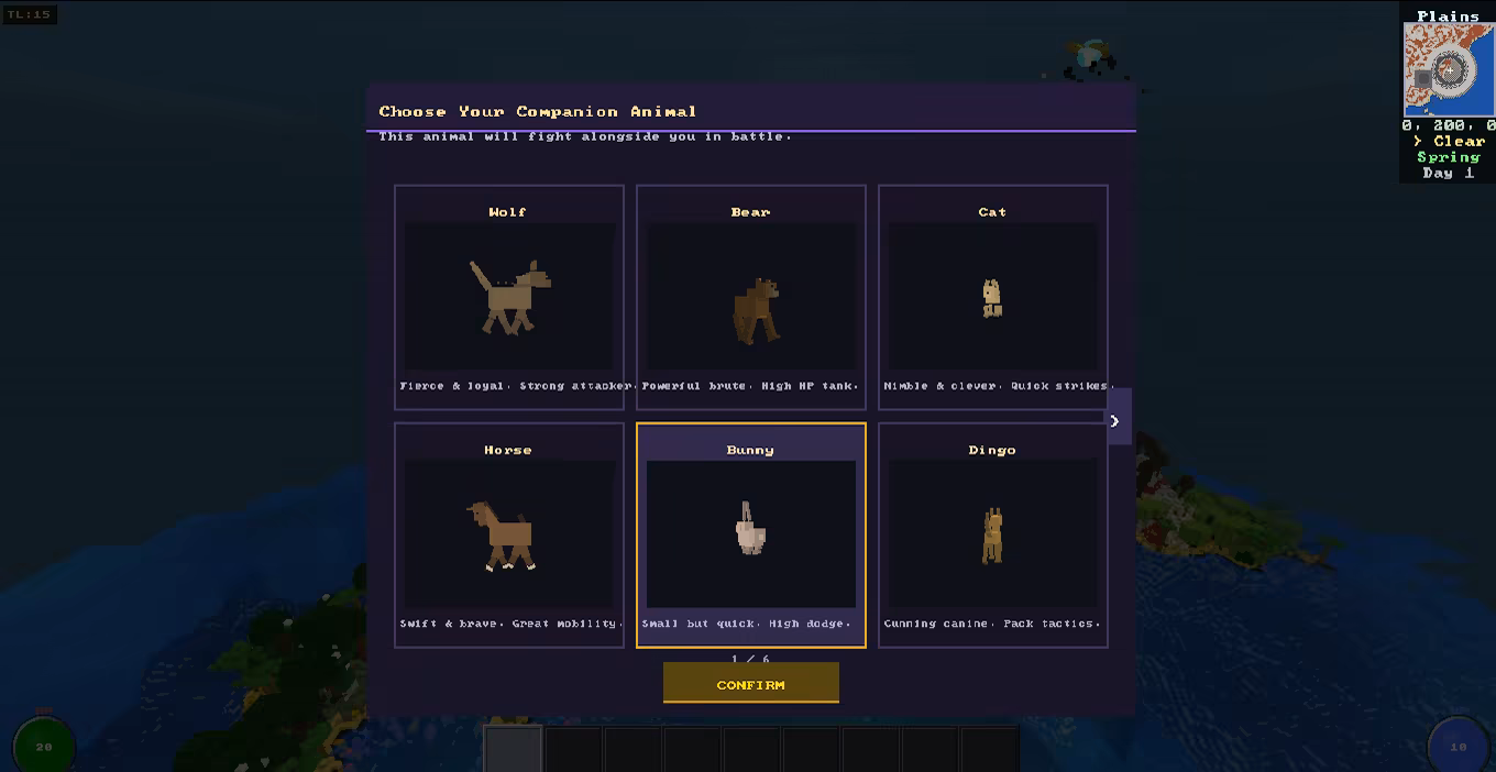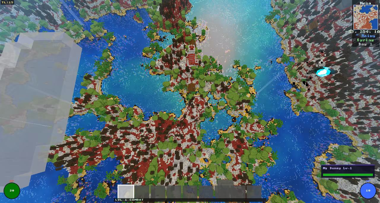 Explore vast landscapes filled with forests, mountains, rivers, and oceans — all procedurally generated to create endless adventures.