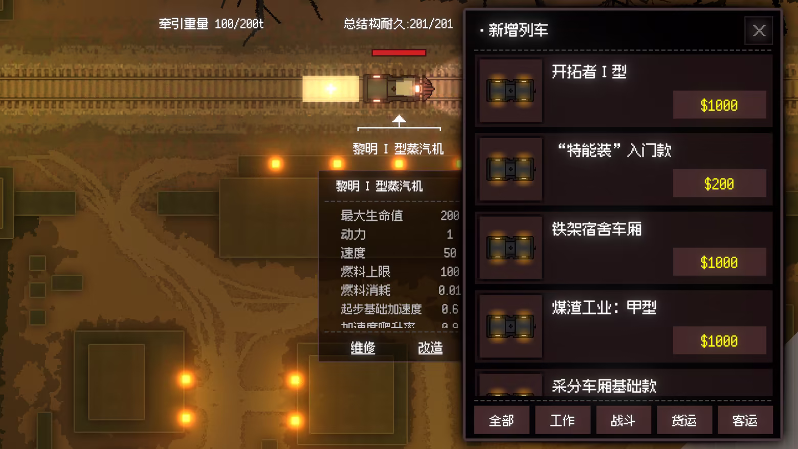 打造你的專屬蒸汽火車:改造車廂、升級車頭,在煤炭時代兼顧運輸效率與生存能力。