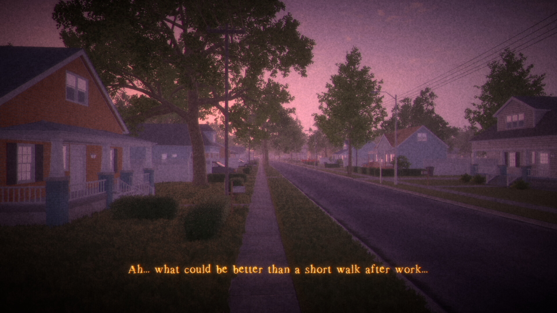 This game is primarily a first-person narrative walking simulator with exploration, driving, fishing and conversation mechanics.