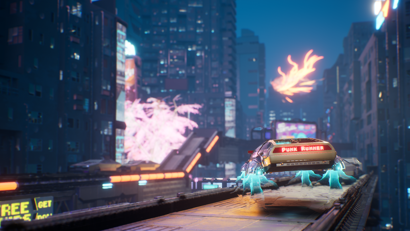 Punk Runner is a flying-car racing game set in a cyberpunk open-world.