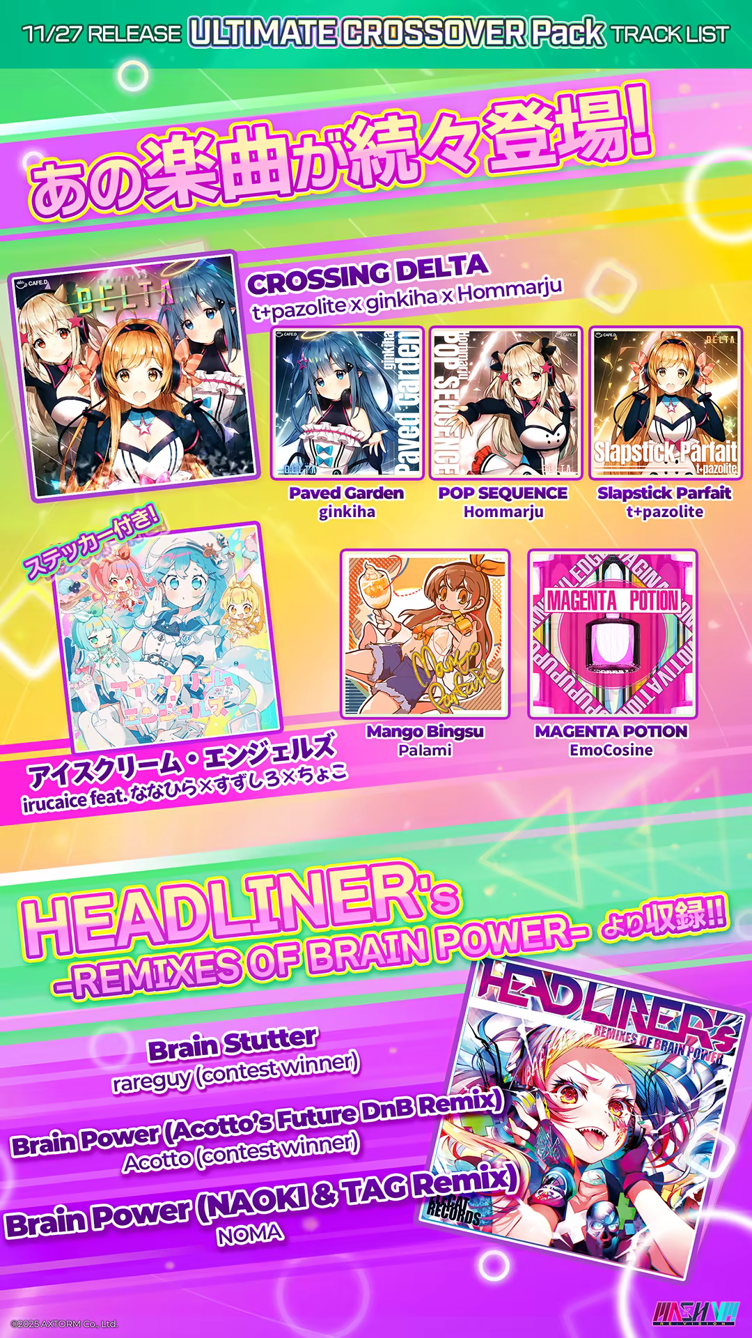 人気のライセンス楽曲や伝説のイベント「CROSSING DELTA」楽曲に加え、「HEADLINER’s -REMIXES OF BRAIN POWER-」より「Brain Power / NOMA」のリミックス楽曲を一挙収録!!