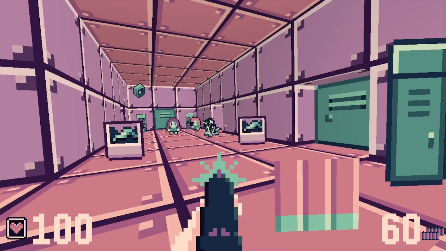 All the robots on Space Station 451 have gone berserk! Only one human is left alive! Can she survive the onslaught and escape? Blast your way through homicidal robots in this groovy throwback retro FPS!