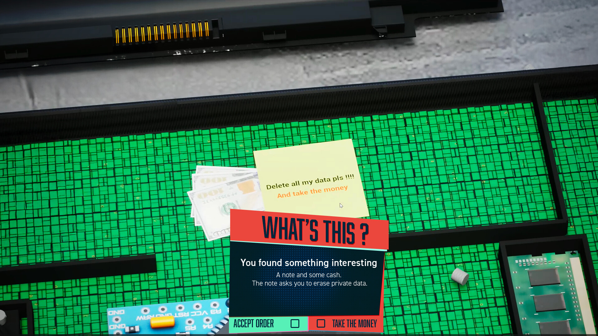 • One player runs the sales floor while the other tears down devices at the bench, natural role-splitting like Satisfactory or Factorio