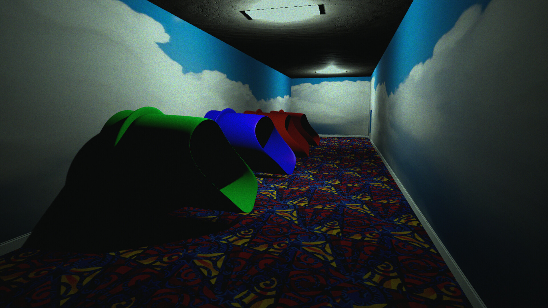 Dream Corps is full of oversized, unnecessary constructions and rooms otherwise known as "liminal" spaces. These spaces evoke feelings of dread, nostalgia and fear.