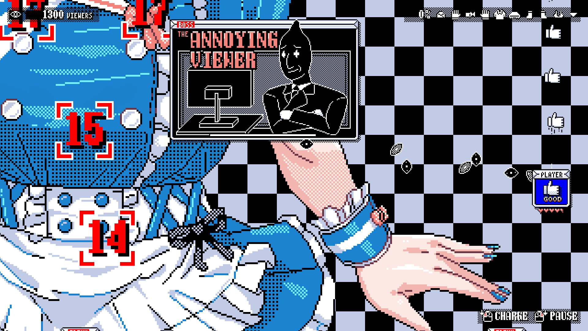 Controls are simple! Use automatic and charged shots to defeat the Dislikes who appear during SUKEBE Girls' SUKEBE streams!