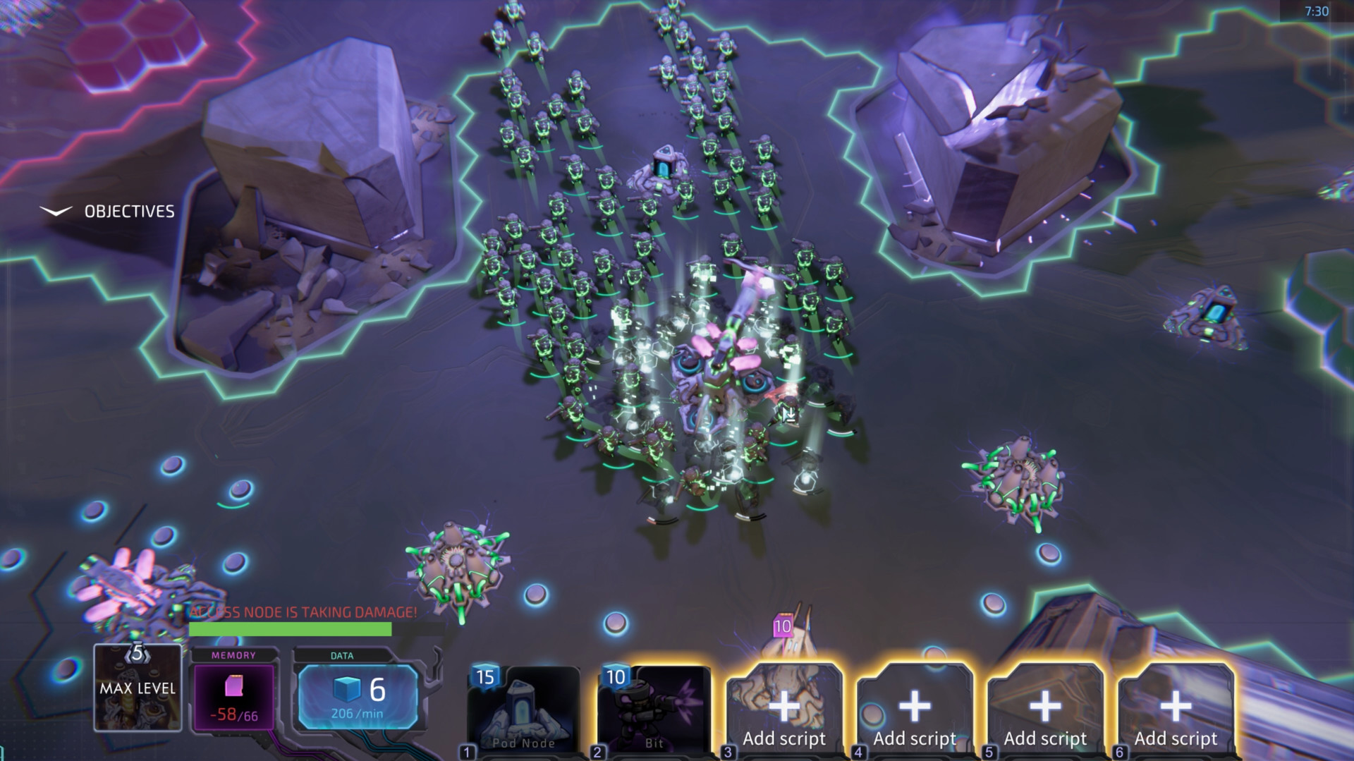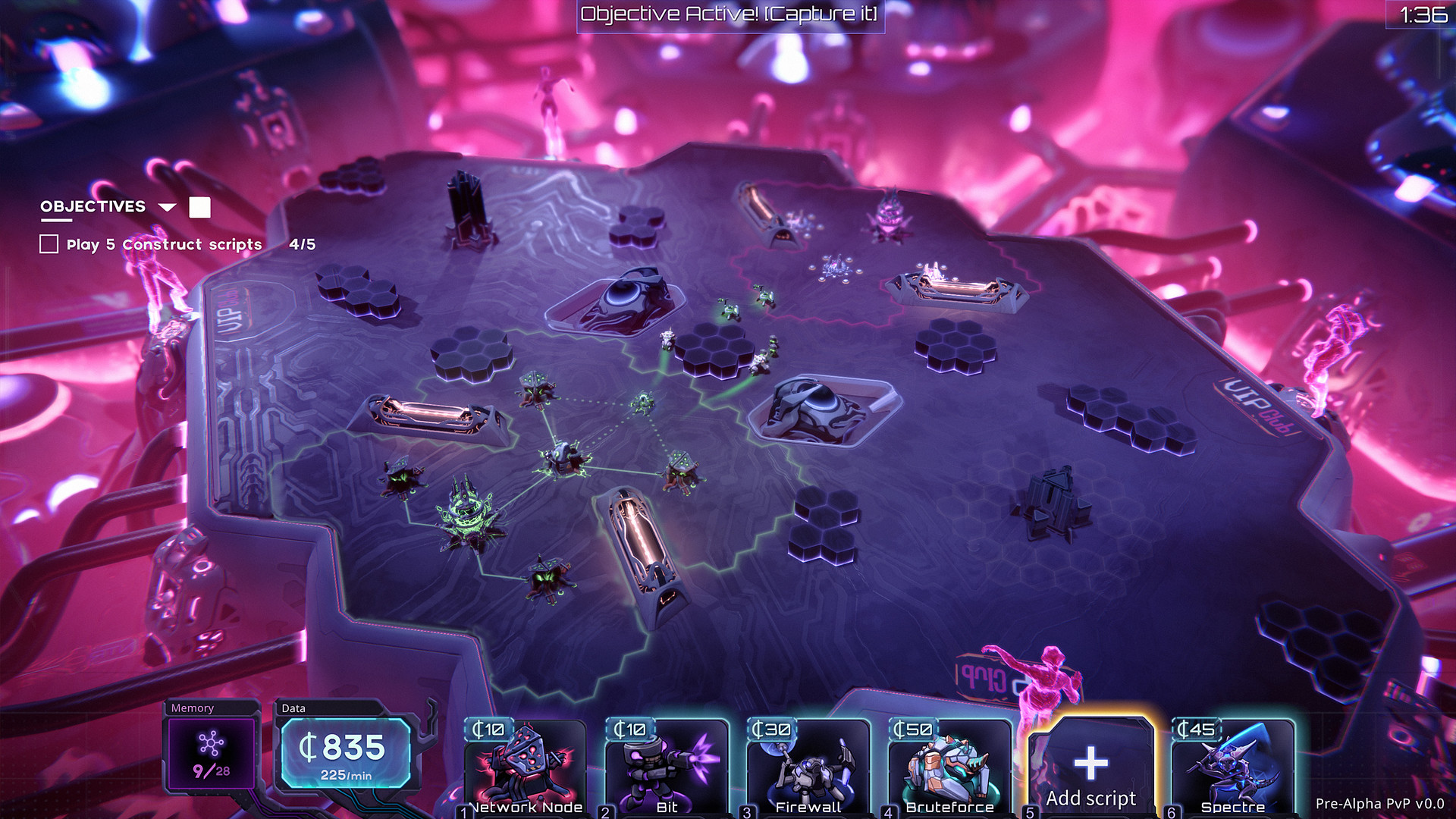 Instead of seeing how fast you can click, NeuroSlicers tasks you with how fast you can think. Using intelligent AI-powered units, you are free to make more significant, more strategic decisions that focus on territory control, resource management, upgrading and careful placement of customizable buildings, units and powerful function abilities called Scripts.