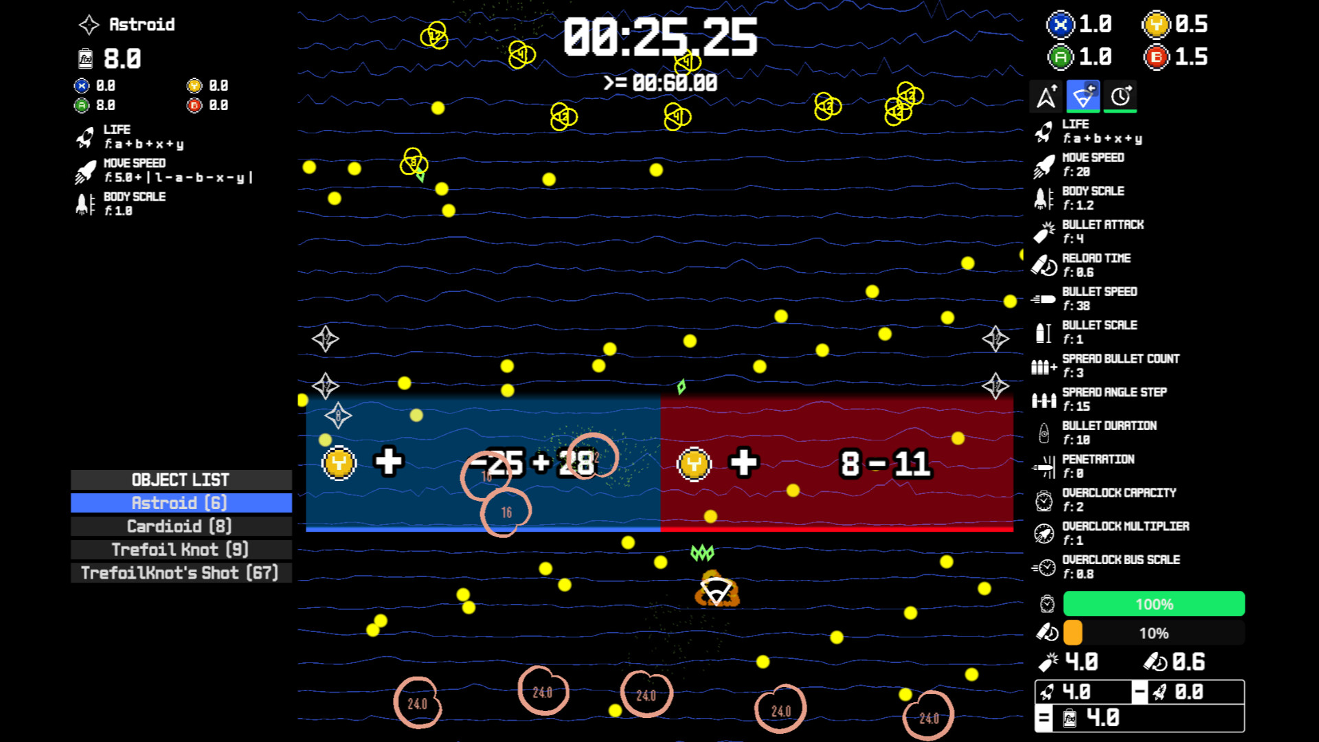 • Your performance is dynamically determined by the calculation results of your ship's "Formulas" (set in your build) and "Variables" that fluctuate during the stage.