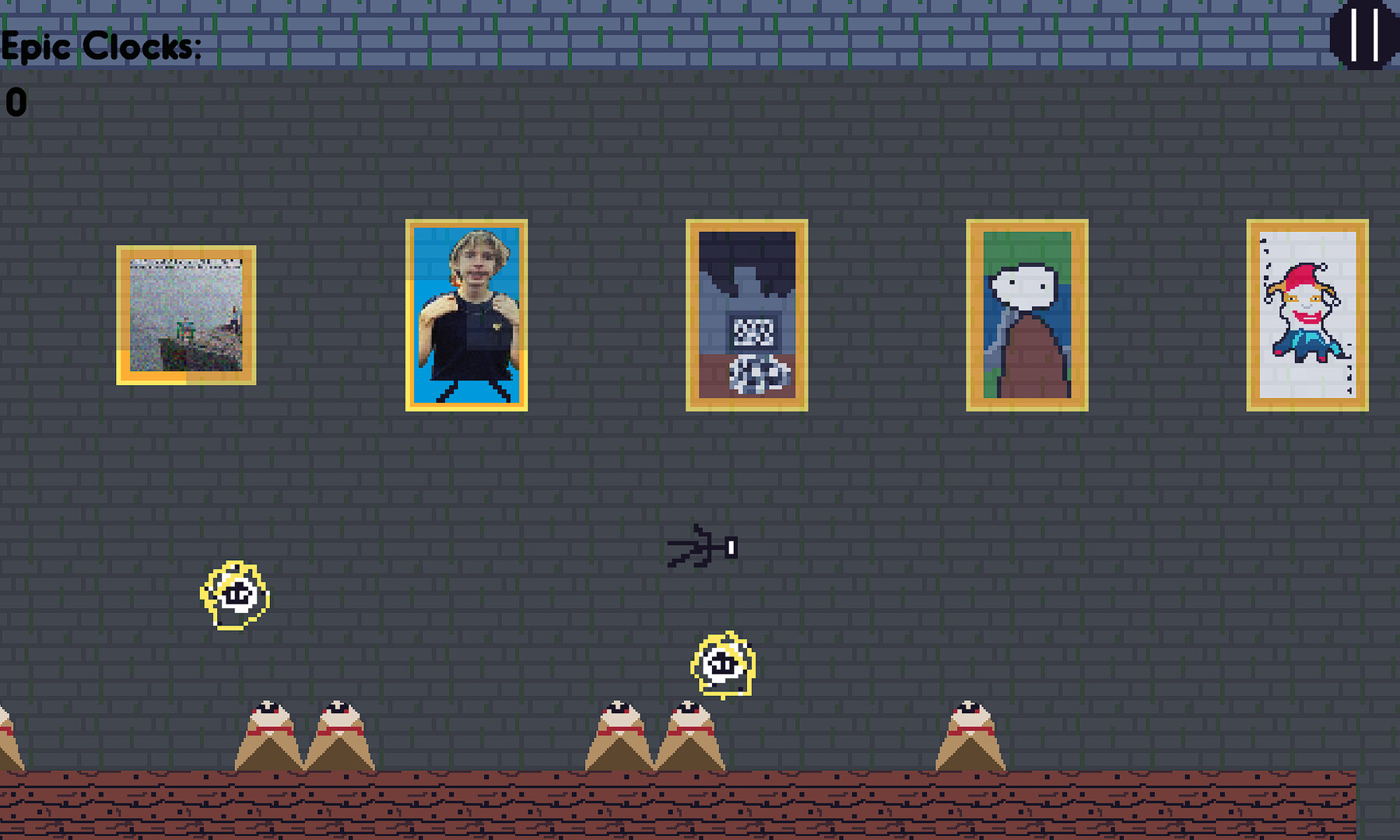 Epic O'clock is a comedic 2d platformer indie game made by a singular person with too much free time. You play as Senor Epic on his quest to take down Mr Stupid Idiot Guy because he's toooo stupid!!!!!! Originally made for a school project, Jack overachieved by adding three times as many levels as were required and multiple cutscenes, as well as many other unnecessary features and flourishes. All art is made by a man who can't draw and all music is made by a man who can't compose. Full of references (and rip-offs) from various media, this game is sure to make you do something! Maybe even play it???? Who knows! Includes over 2 seconds of gameplay, but less than 1 gazillion (unless you're really bad)