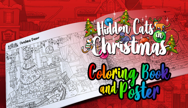 Discover the art of Hidden Cats in Christmas in a charming Coloring Book and Coloring Poster collection!