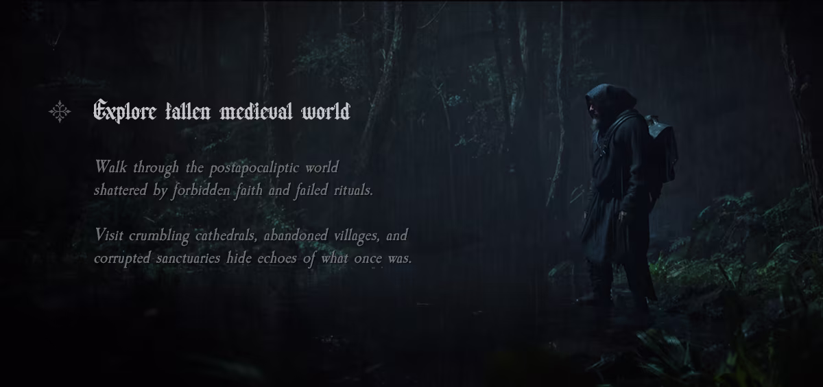 Dive into a world consumed by the biblical apocalypse. As a fallen priest seeking redemption, battle demonic horrors, cleanse the tormented, and gather what remains to rebuild the Sanctuary of Ash - the faint light in a dying world.