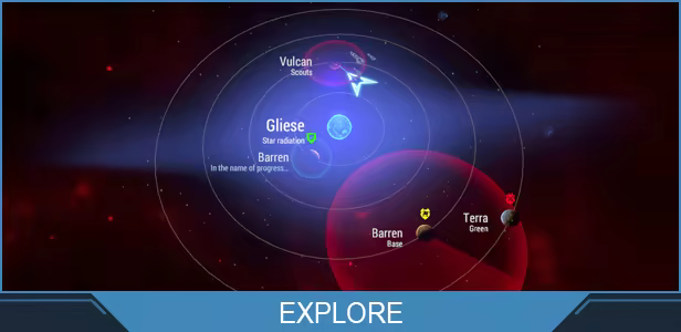 Perform expeditions to outer space; gather ressources and take care of your crew's morale as it greatly influences your power.