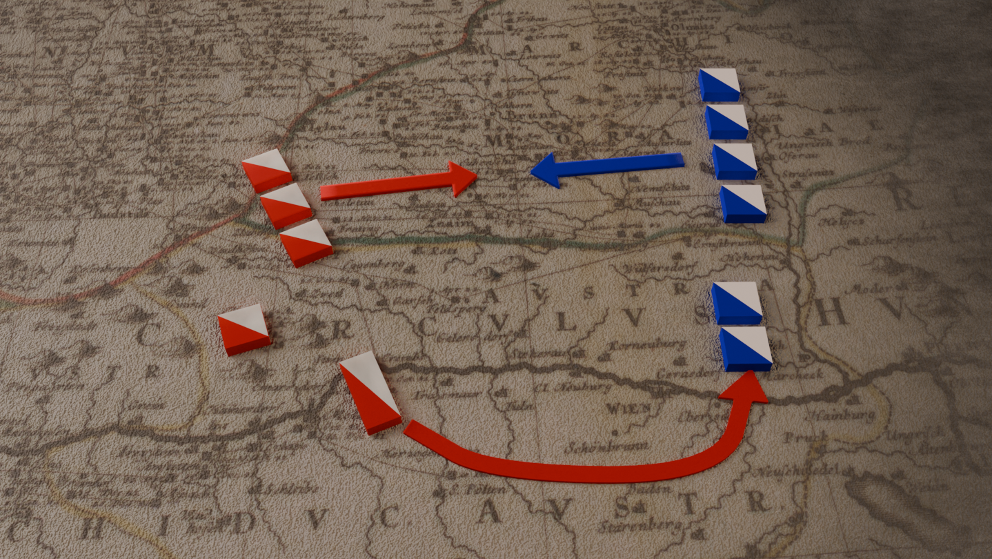 Your control over your troops is limited: you depend on couriers to transmit your orders to these regiments. Your regiments will also send you couriers, to keep you informed of the situation beyond your field of vision. Furthermore, you must pay attention to the terrain, supplies, and the condition of your troops.