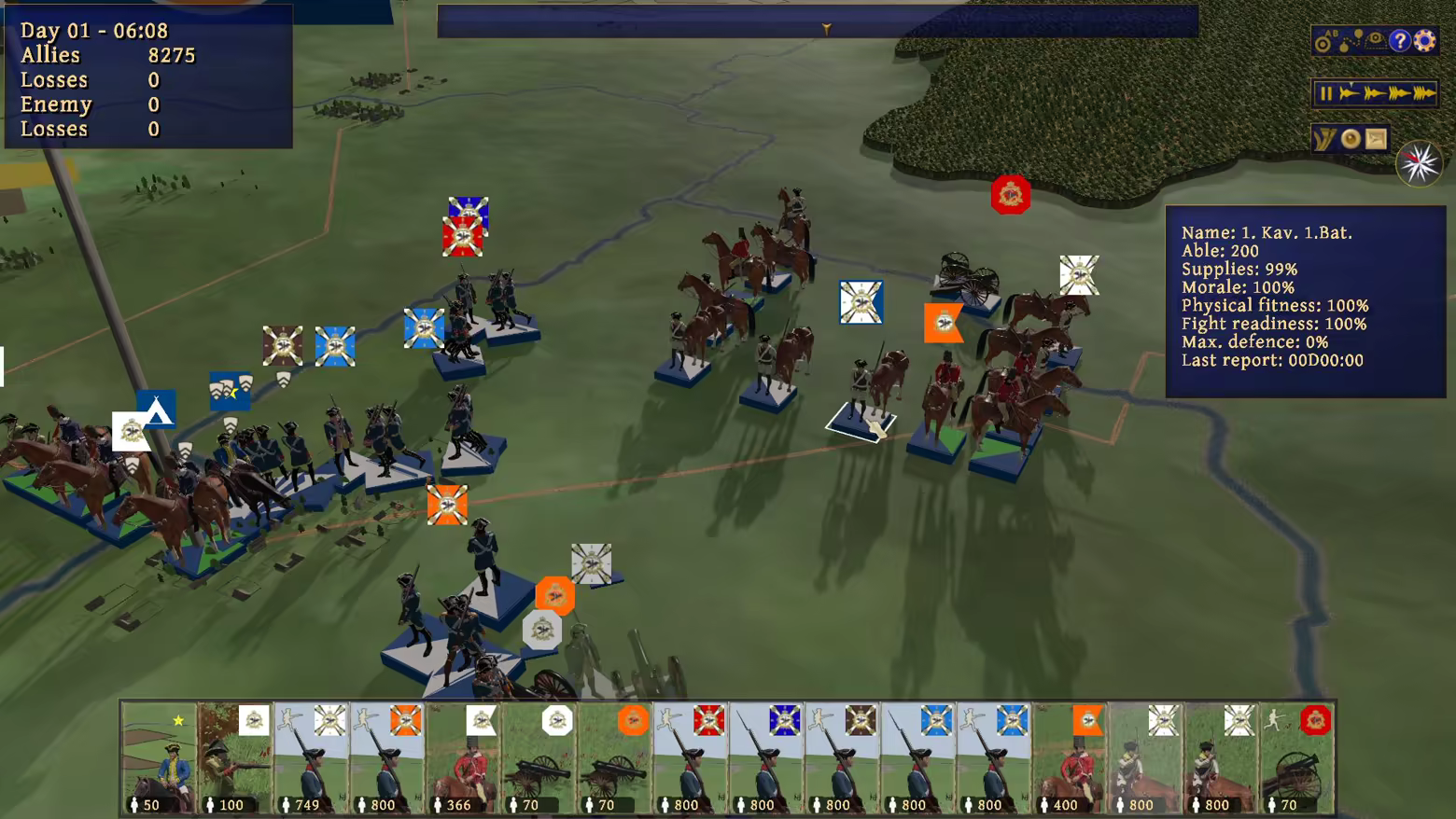 On the battlefield, the effectiveness of battalions fluctuates depending on supplies, morale, and physical condition: