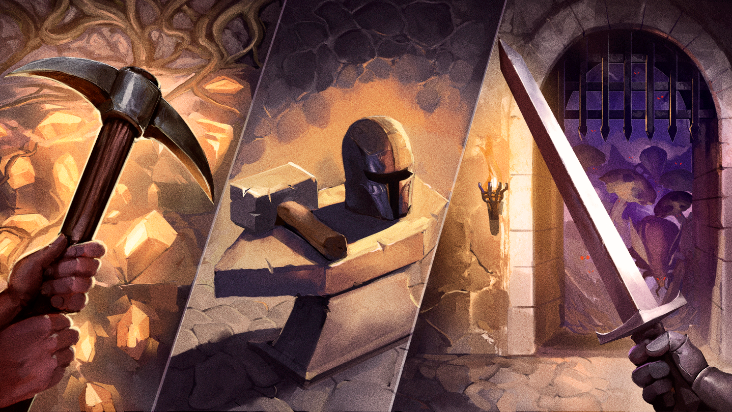 Forge equipment and infuse it with stats and effects using items collected from dungeon monsters. Combine three items of the same tier into stronger gear (common, uncommon, epic, and legendary). Upgrade your pickaxe for faster mining and bigger digs, and expand your inventory to carry more loot.