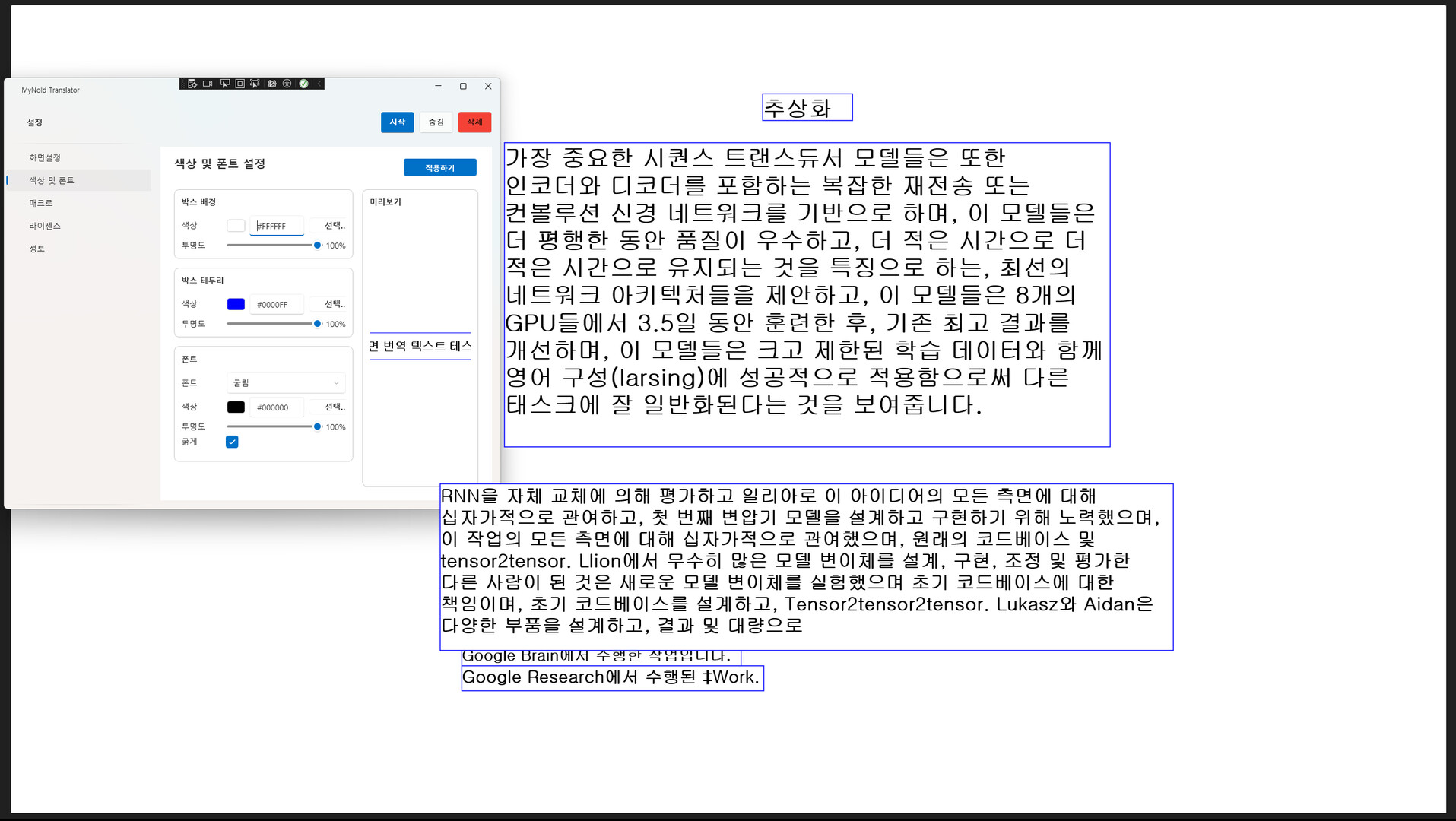 MyNoid Translator is a desktop translation tool that recognizes any visible window as an image and translates the text on screen. Unlike Chrome extensions or web-based translators, it works consistently across all Windows applications, providing a much broader and more flexible usage environment.