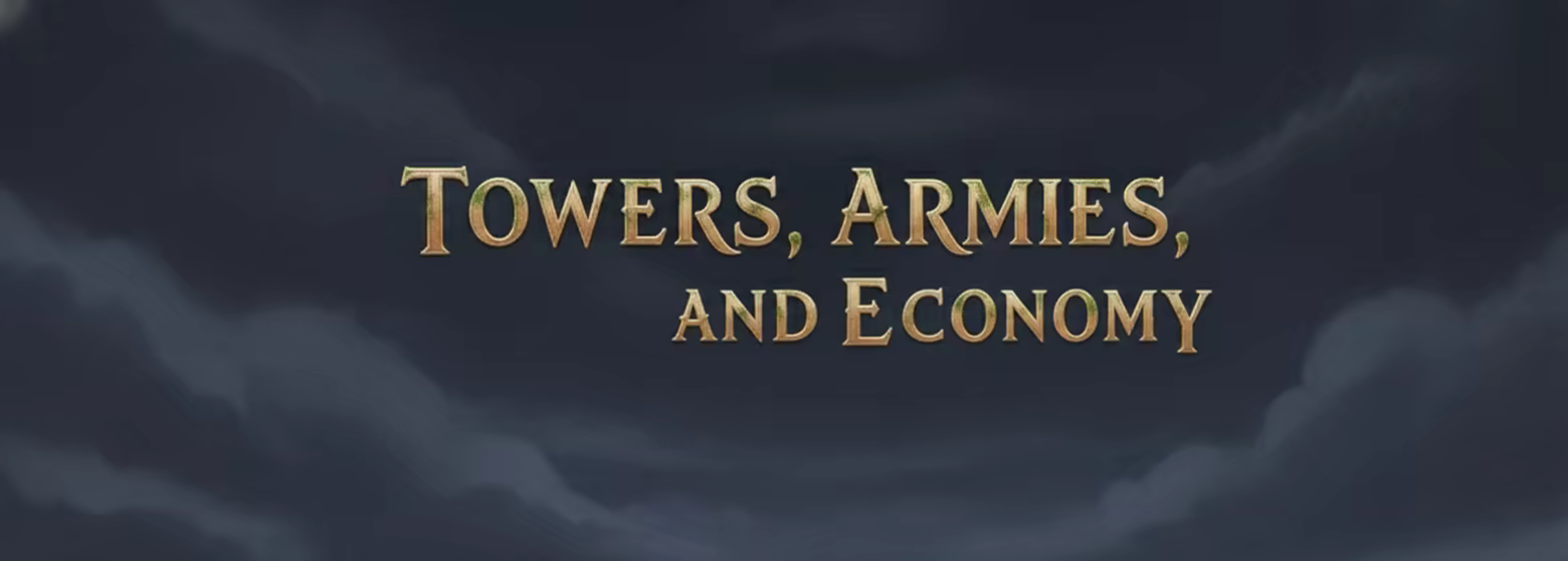 • Towers – Arrow, magic, AOE rock throwers, and healer towers to cover lanes and support allies.