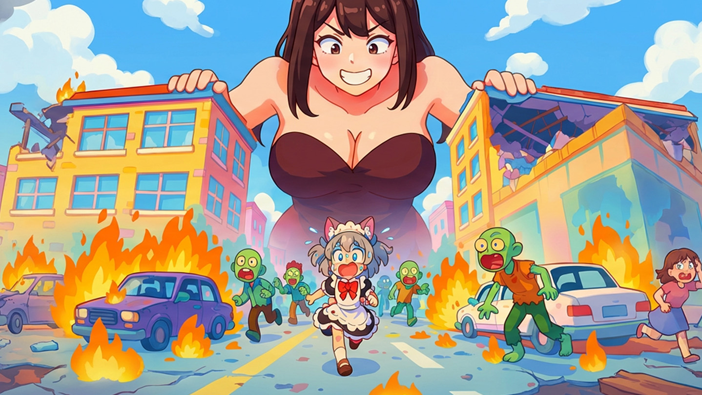 The anime-style female characters in the game (including the Giantess final boss) feature exaggerated body proportions and wear tight-fitting or revealing outfits. The game does not contain any nudity or explicit sexual acts