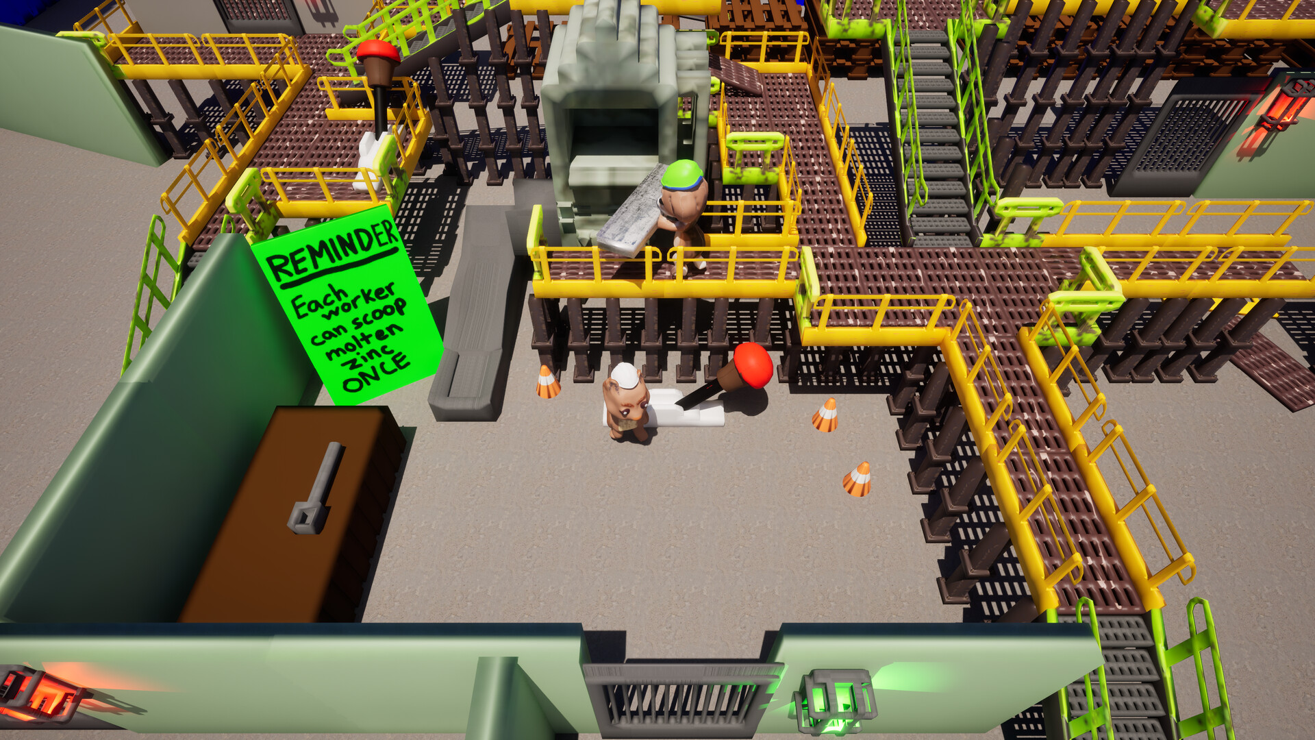 A cooperative puzzle adventure set inside a zinc refinery. Play as two tiny workers, solve industrial challenges, carry molten zinc, operate machinery, and work together to keep the factory running.