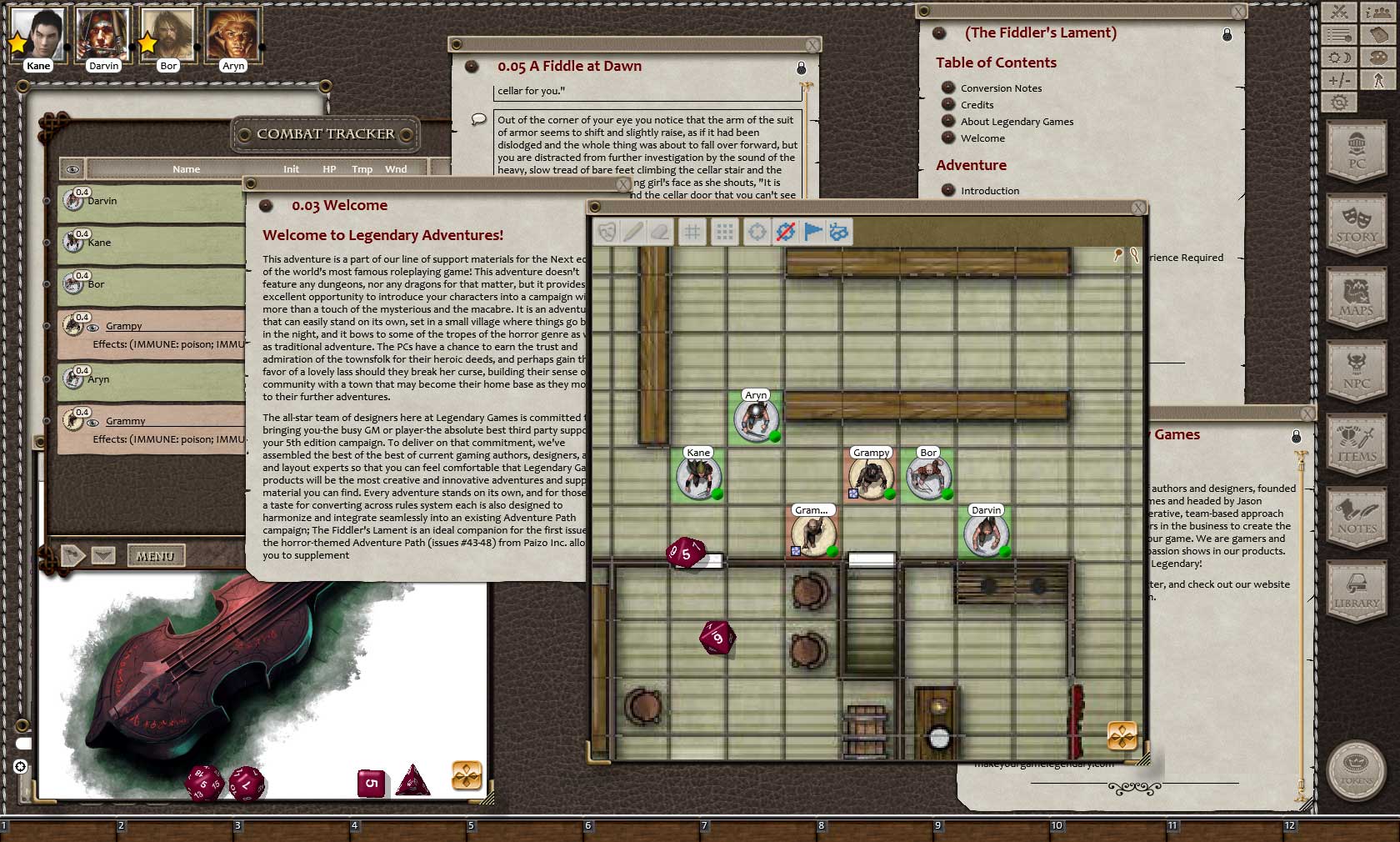 Requires: The free Fantasy Grounds virtual tabletop (VTT) software and the included 5E Compatible ruleset.