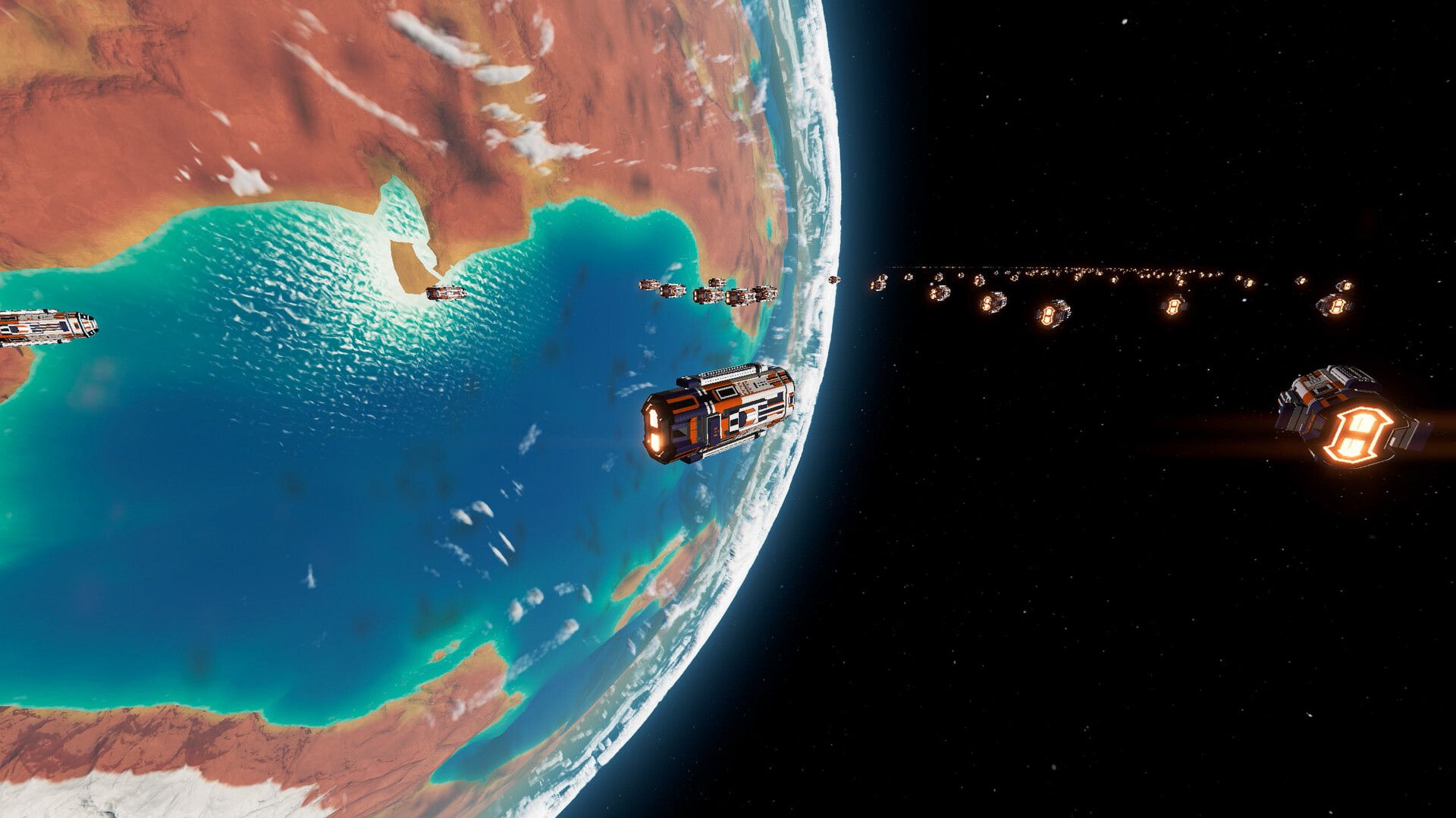 Use flagships to lead your convoys across the system rather than managing every vessel individually. Built for scale, so even at very high time warp your fleet's physics run reliably and at full performance.