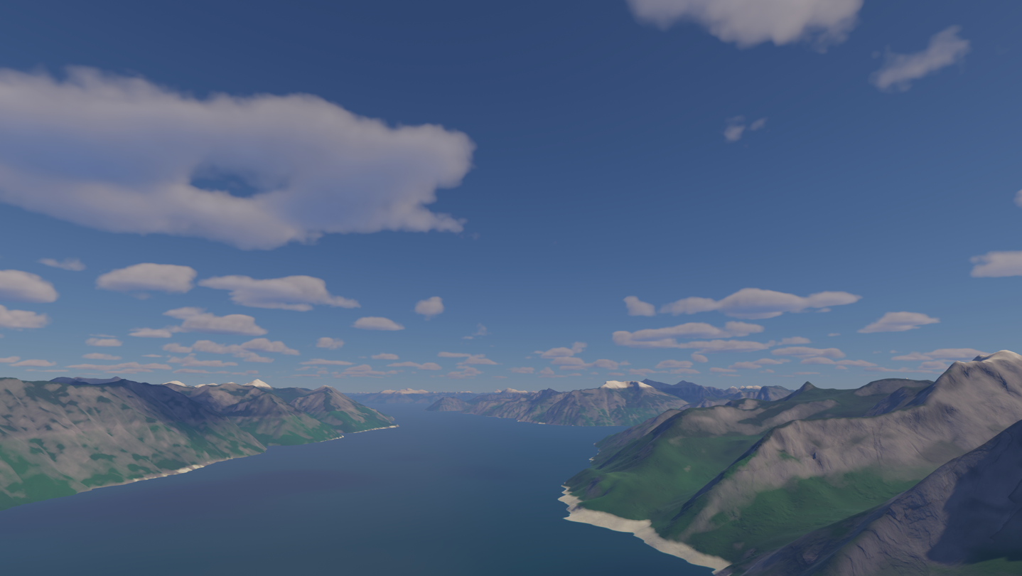 • Fly across and explore a mountainous, flooded 360,000 square km (140,000 square mi) map.