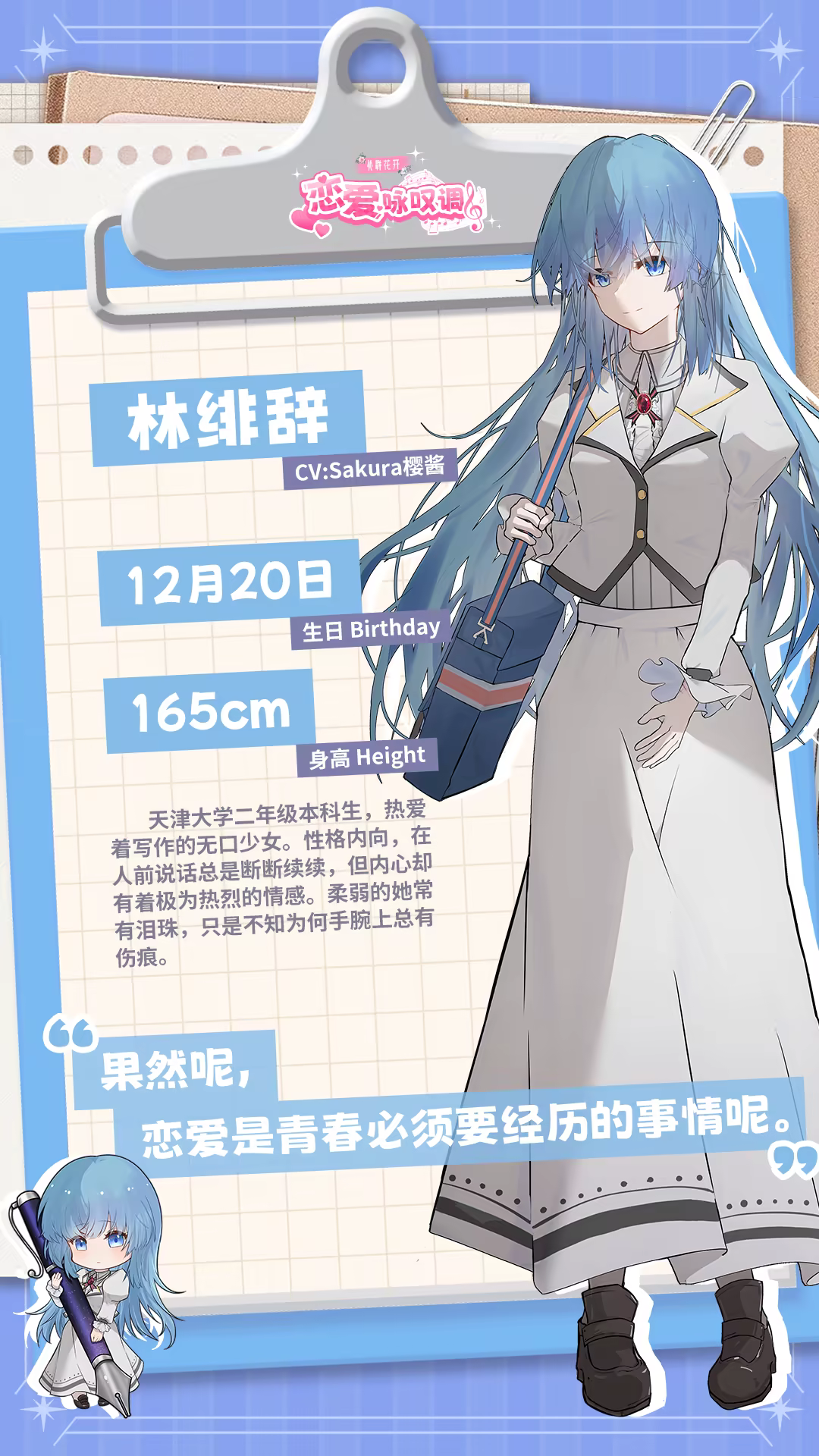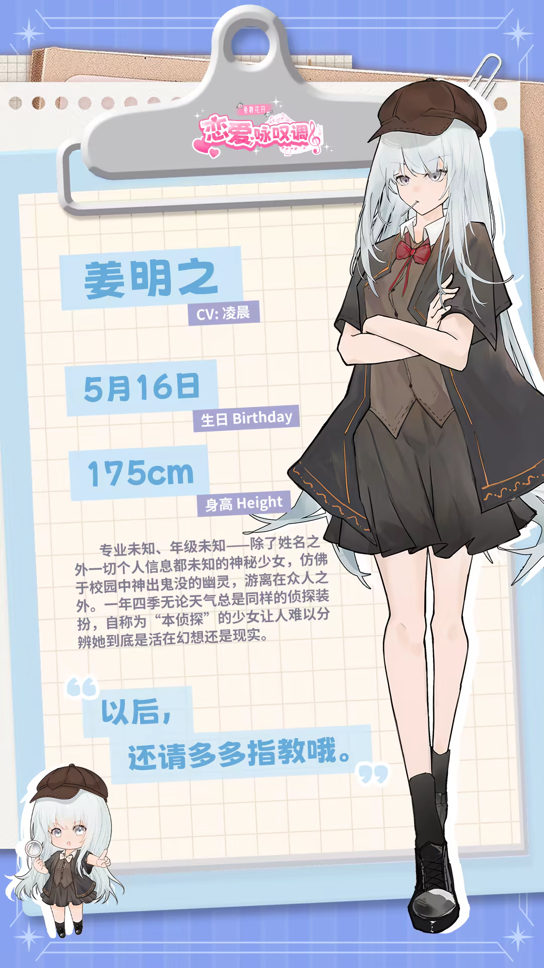 ——姜明之,不知道从何而来的神秘少女,但她的目光必将永属于你。