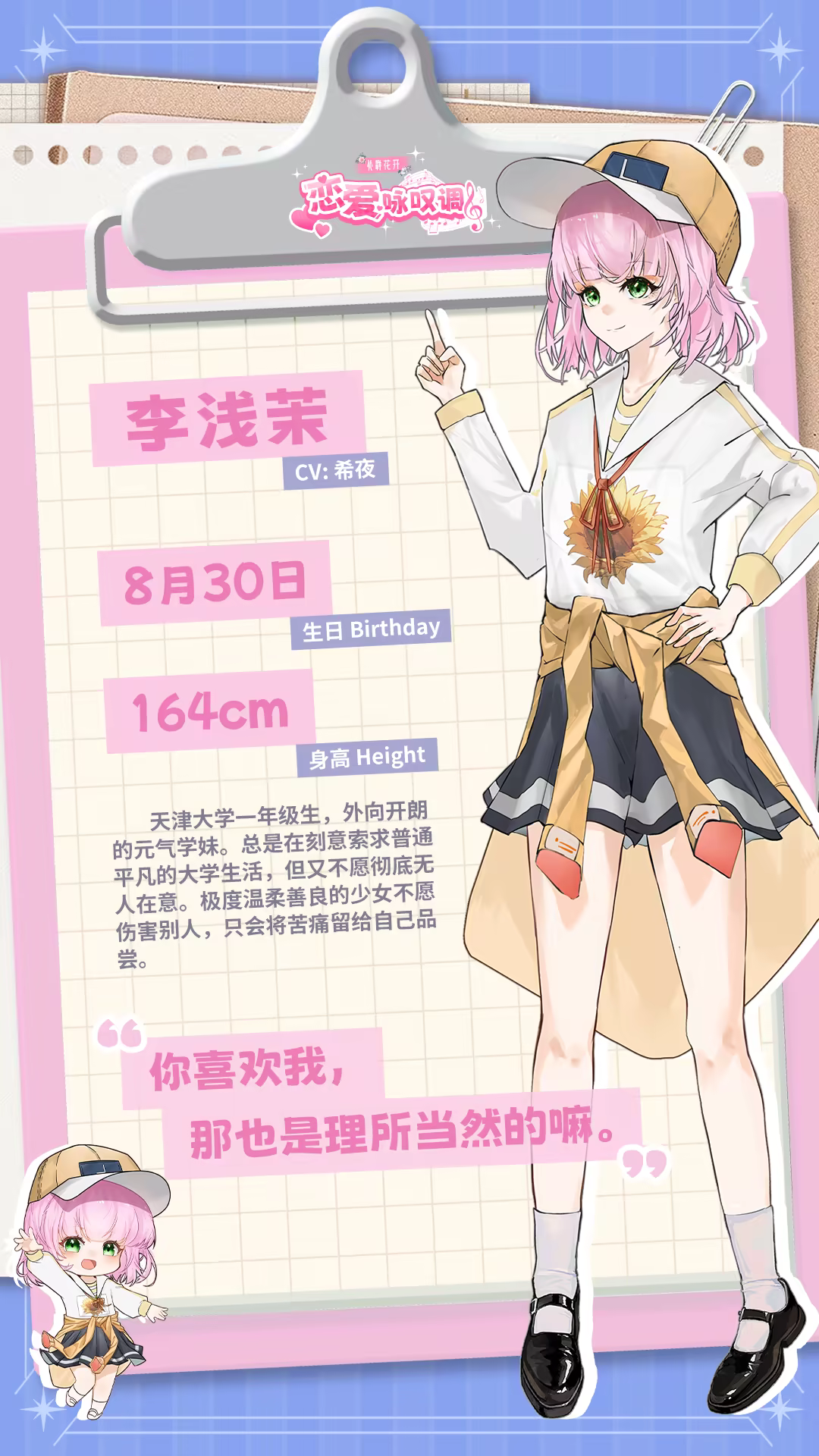 ——李浅茉,你的好学妹,有时会一起打电脑游戏。