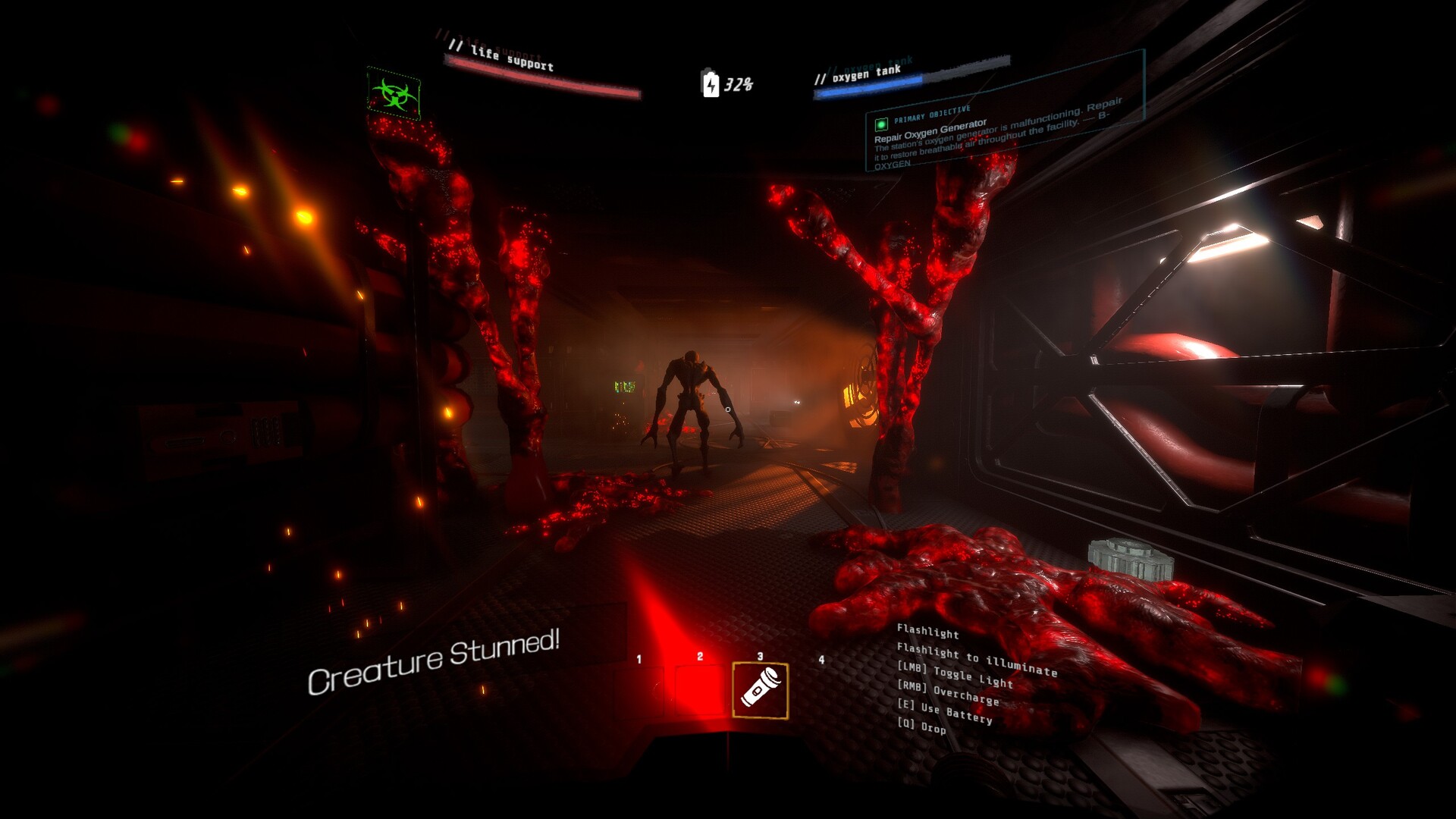 • Scarce resources: flashlights drain, scanners have cooldowns, medkits run out. Nothing recharges for free — plan carefully or improvise under pressure.