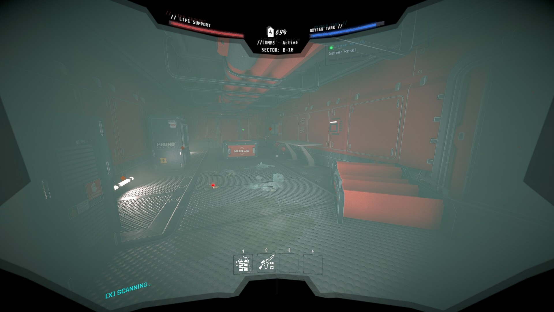 • 稀缺資源: 手電筒會耗盡,掃描儀有冷卻時間,醫療包會用完。沒有免費充能——仔細計畫或在壓力下隨機應變。