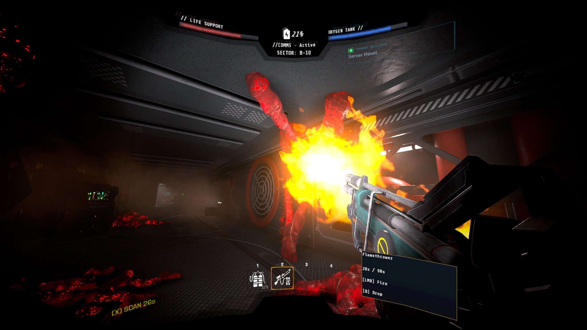 • Scarce resources: flashlights drain, scanners have cooldowns, medkits run out. Nothing recharges for free — plan carefully or improvise under pressure.