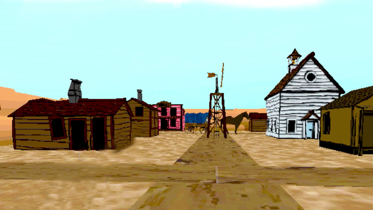 You will start off in a procedurally generated town. You're an Outlaw so naturally, everyones gunning for you. You have some bullets to start, but you'll need to find ammo to keep shooting.