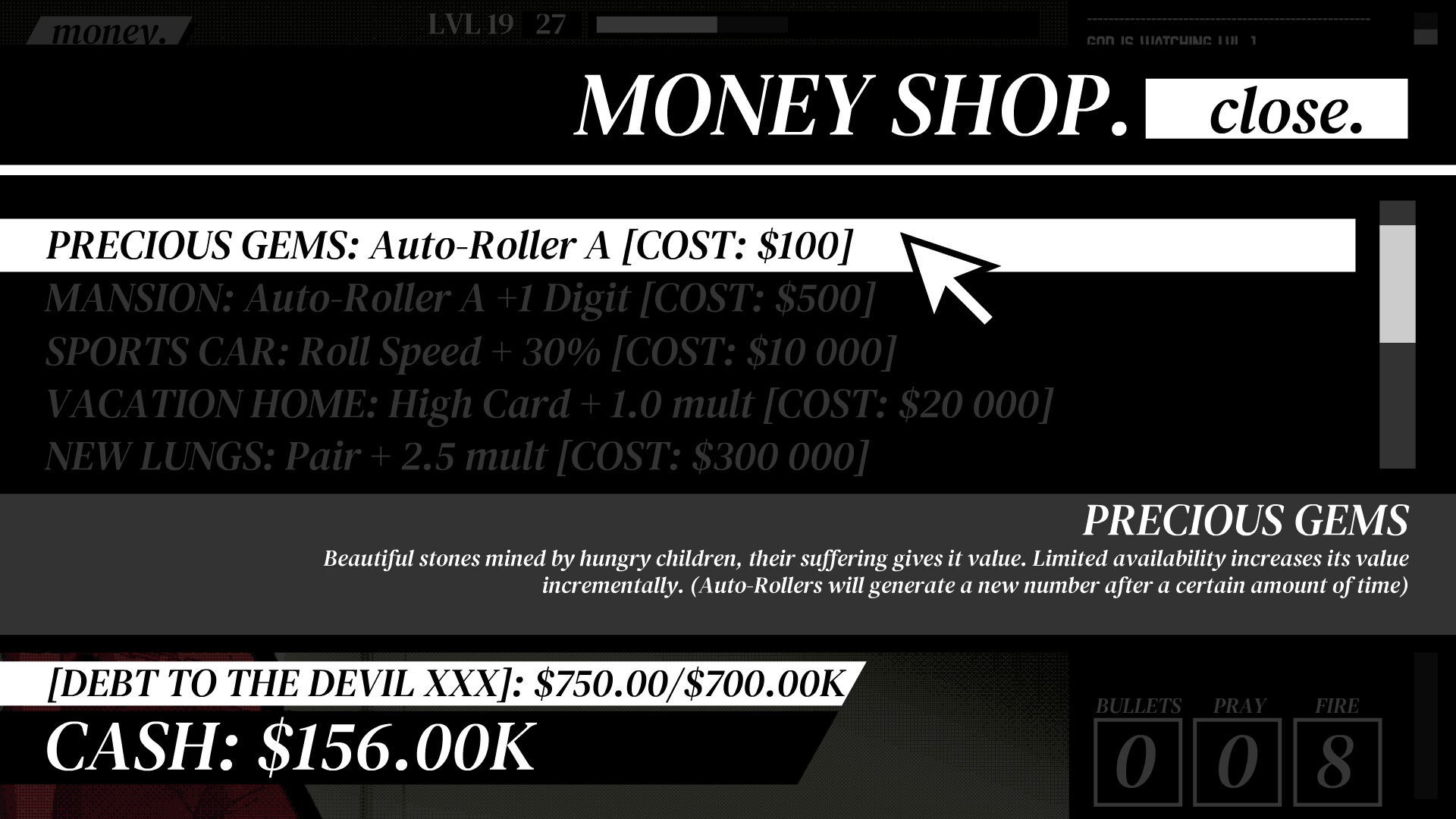 • Pay the Devil to get access to more powerful upgrades.