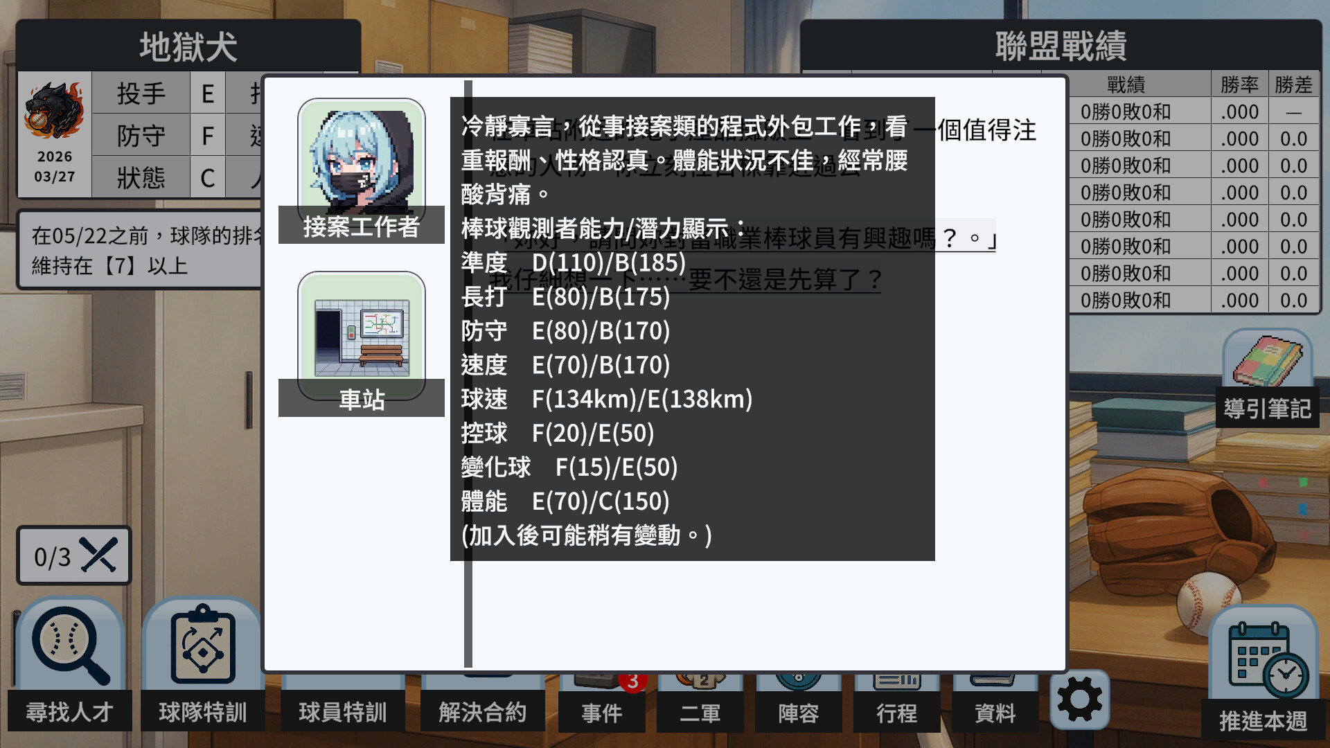 這是一款以類似 劇情AVG+文字模擬 為核心的棒球經營遊戲。玩家不需操作比賽,而是專注於陣容替換與厚實戰力。