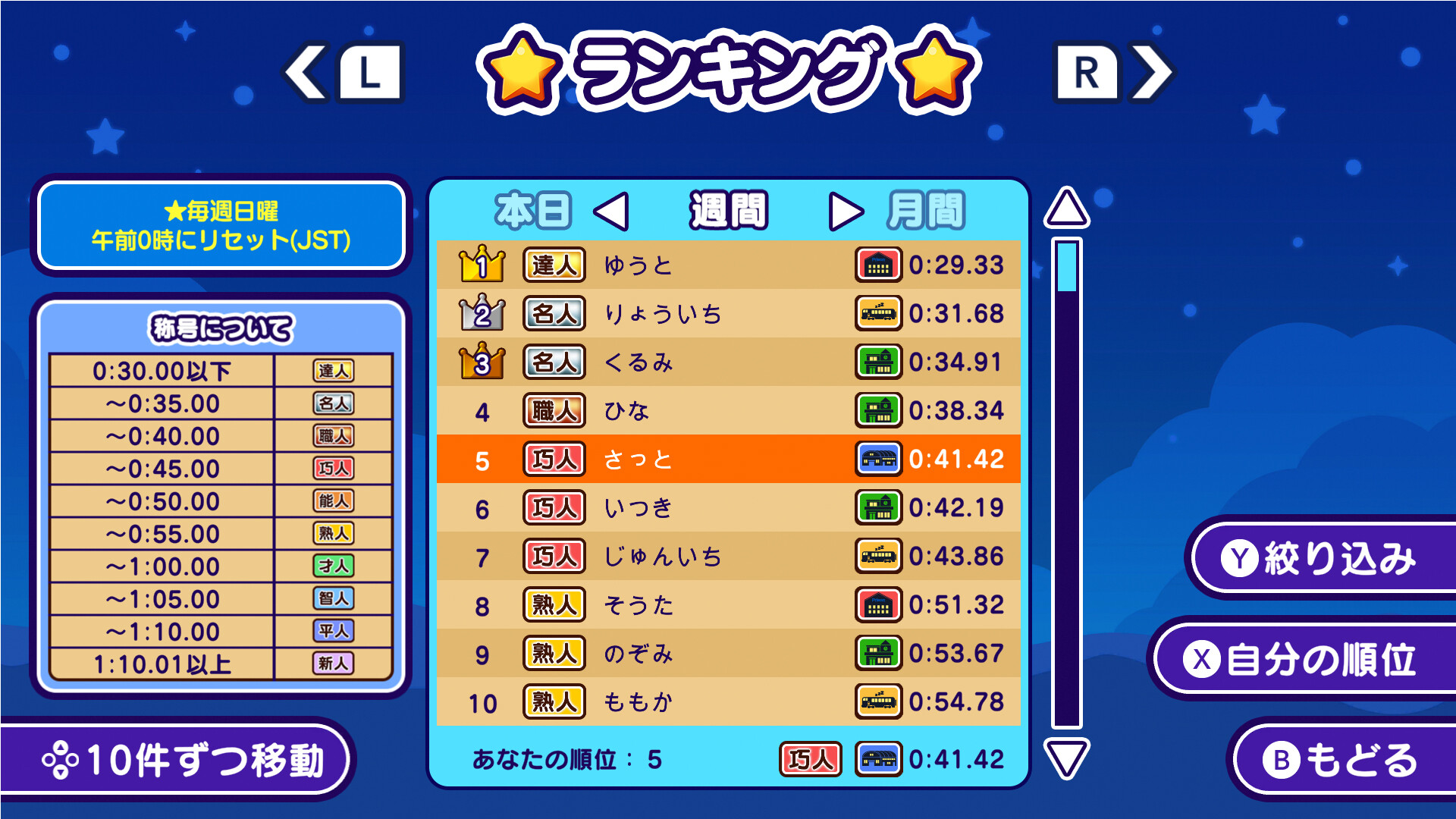 ランキング上位を目指してクリアタイムを競おう!