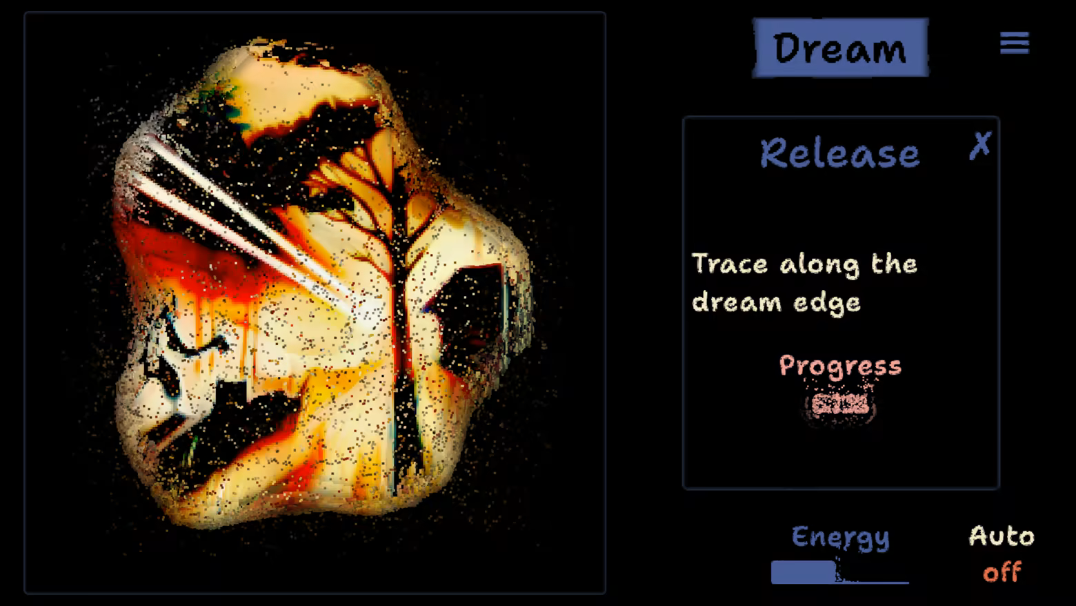 A meditative incremental experience where you interact with dreams in four phases: discover, expand, enjoy, and release. Each phase offers unique mechanics that go beyond simple clicking, requiring concentration, engagement, and optimization.
