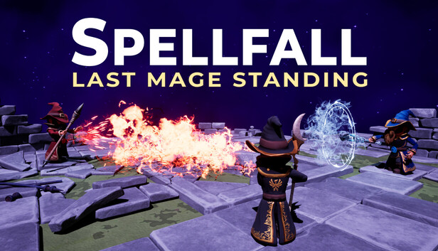 Spellfall: Last Mage Standing is a fast paced top-down arena brawler where 6 mages draft spells and items across 5 rounds, battle on a collapsing magic infused arena, and fight to be the last mage standing.