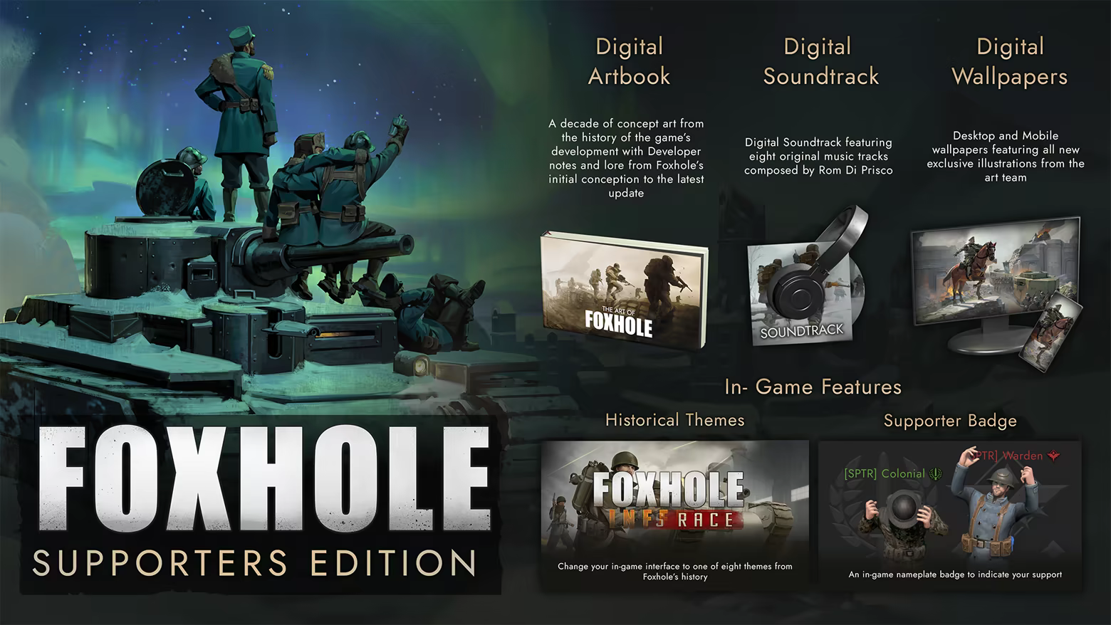 The Supporters Edition is a celebration of a decade of Foxhole. This edition is intended for veteran players and/or those who want to support ongoing development.
