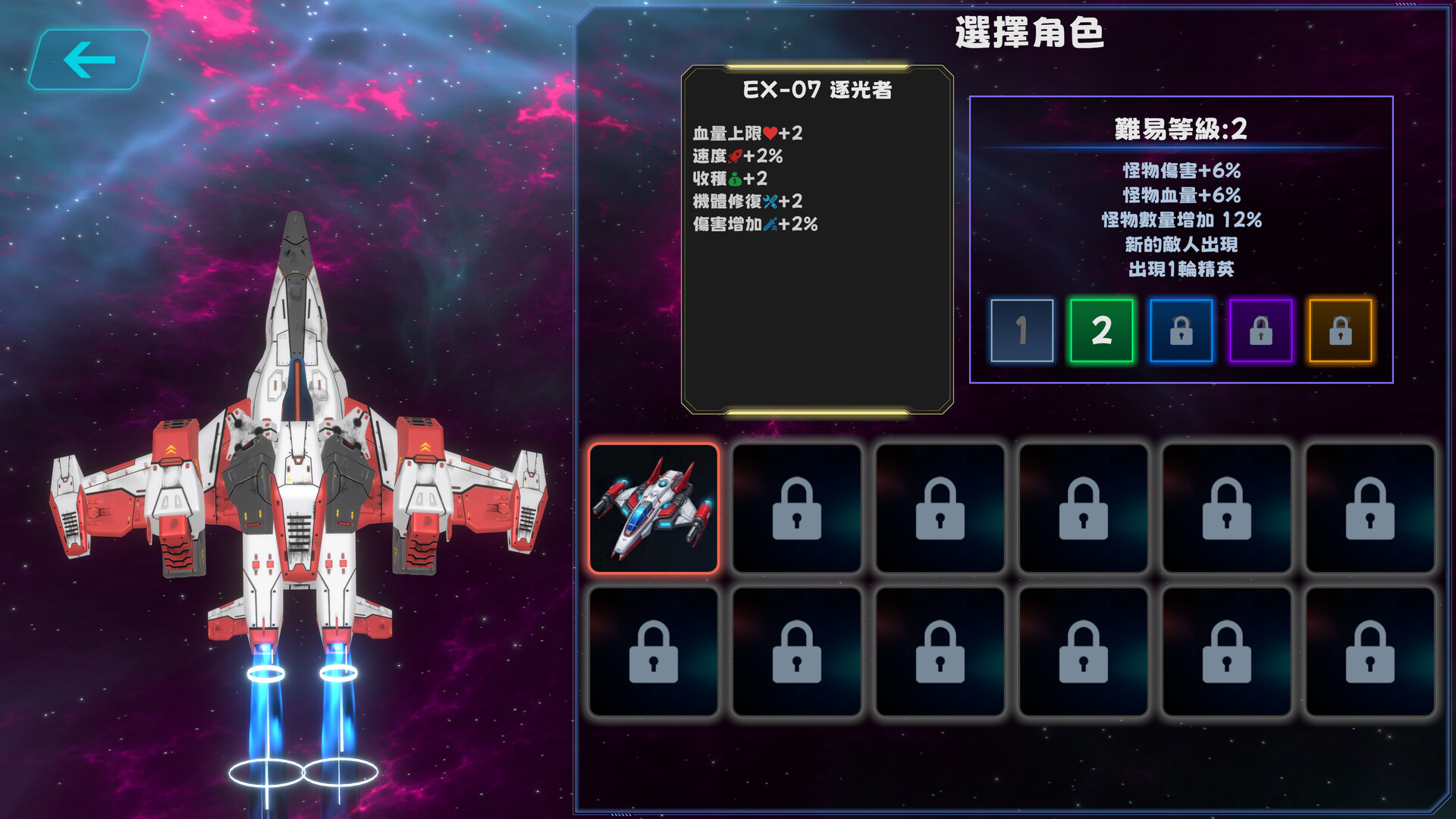 在浩瀚的銀河深處,你是最後的倖存者。敵人的浪潮不斷湧來,宇宙中充滿未知危險,而你的唯一任務,就是在有限的時間內生存下來。駕駛你的飛船,在緊張刺激的關卡中戰鬥、收集資源、升級武器與能力。