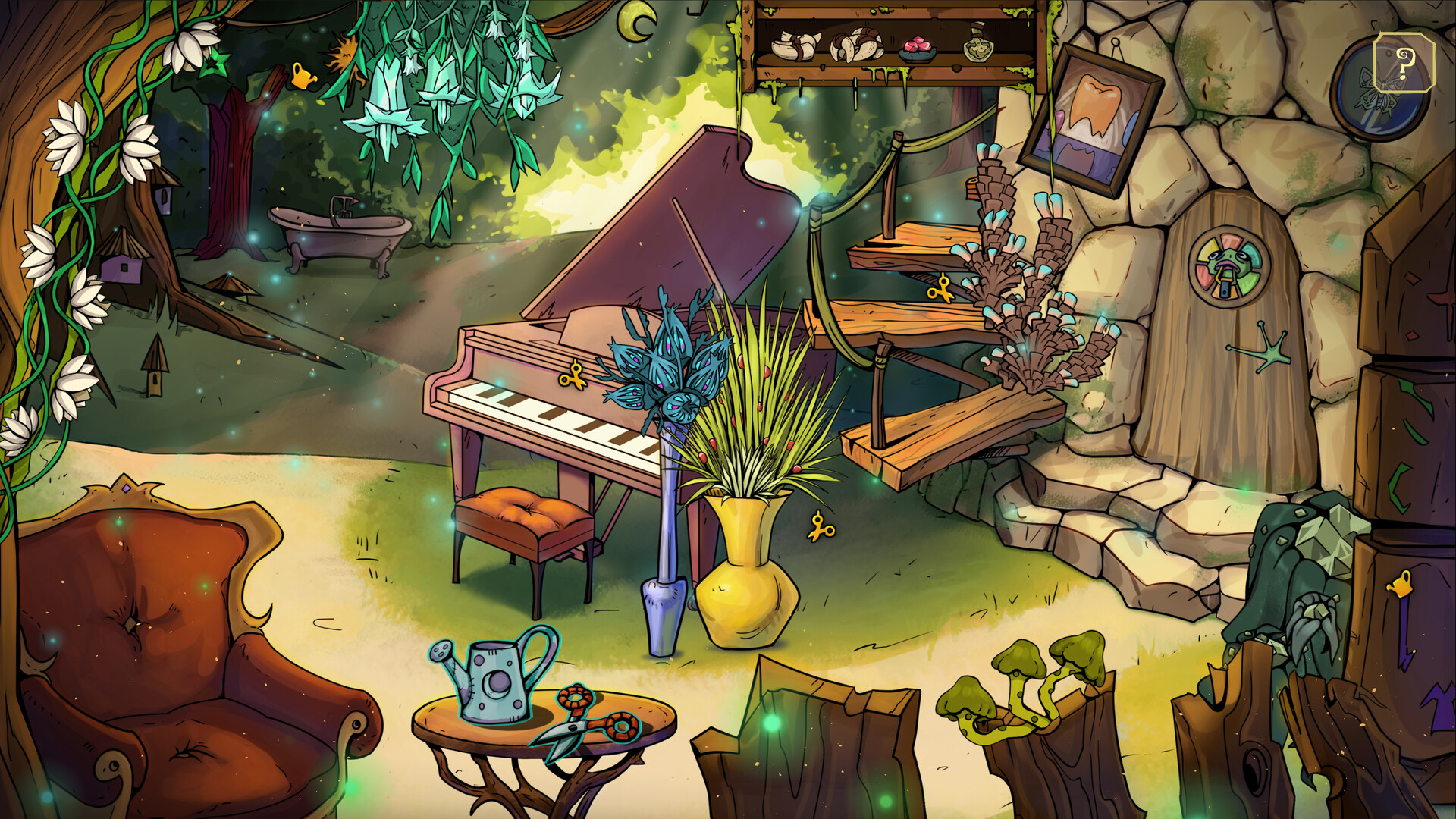 • Cozy 2D puzzle gameplay with a humorous, mystical tone