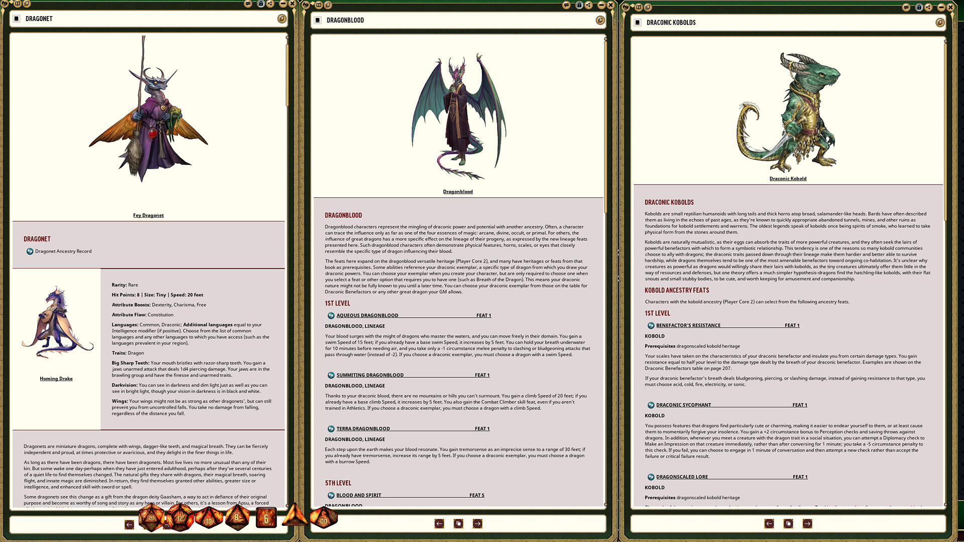 • Ancestry and heritage options to play a draconic character of your own, from expansions to the dragonblood and kobold to a brand-new dragonet ancestry!