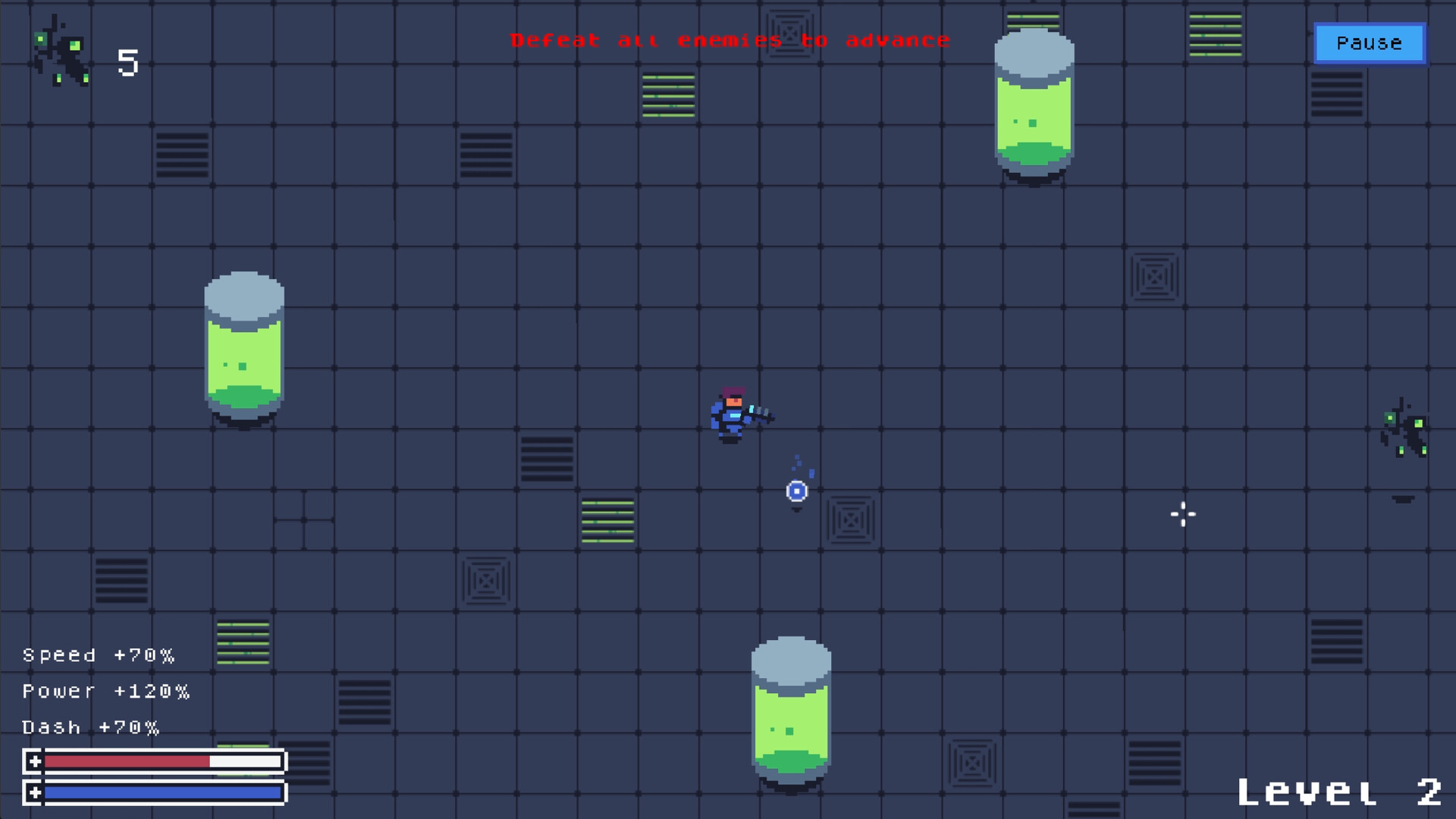 • Enemies are spawned with some random chance, so each level you progress to will have different amounts of each enemy type.