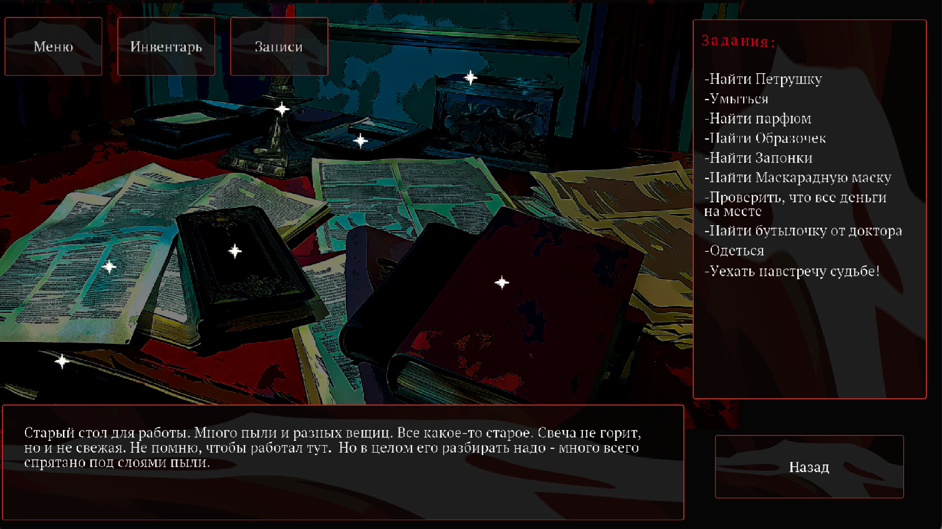 30-70 минут интенсивного погружения в психологический хоррор. Люди будут переигрывать ради других карт. Ради других путей. Ради правды. Поиск предметов, заметок и смысла. Решение загадок. И, конечно же, игра в карты - главное развлечение Петербурга того времени.