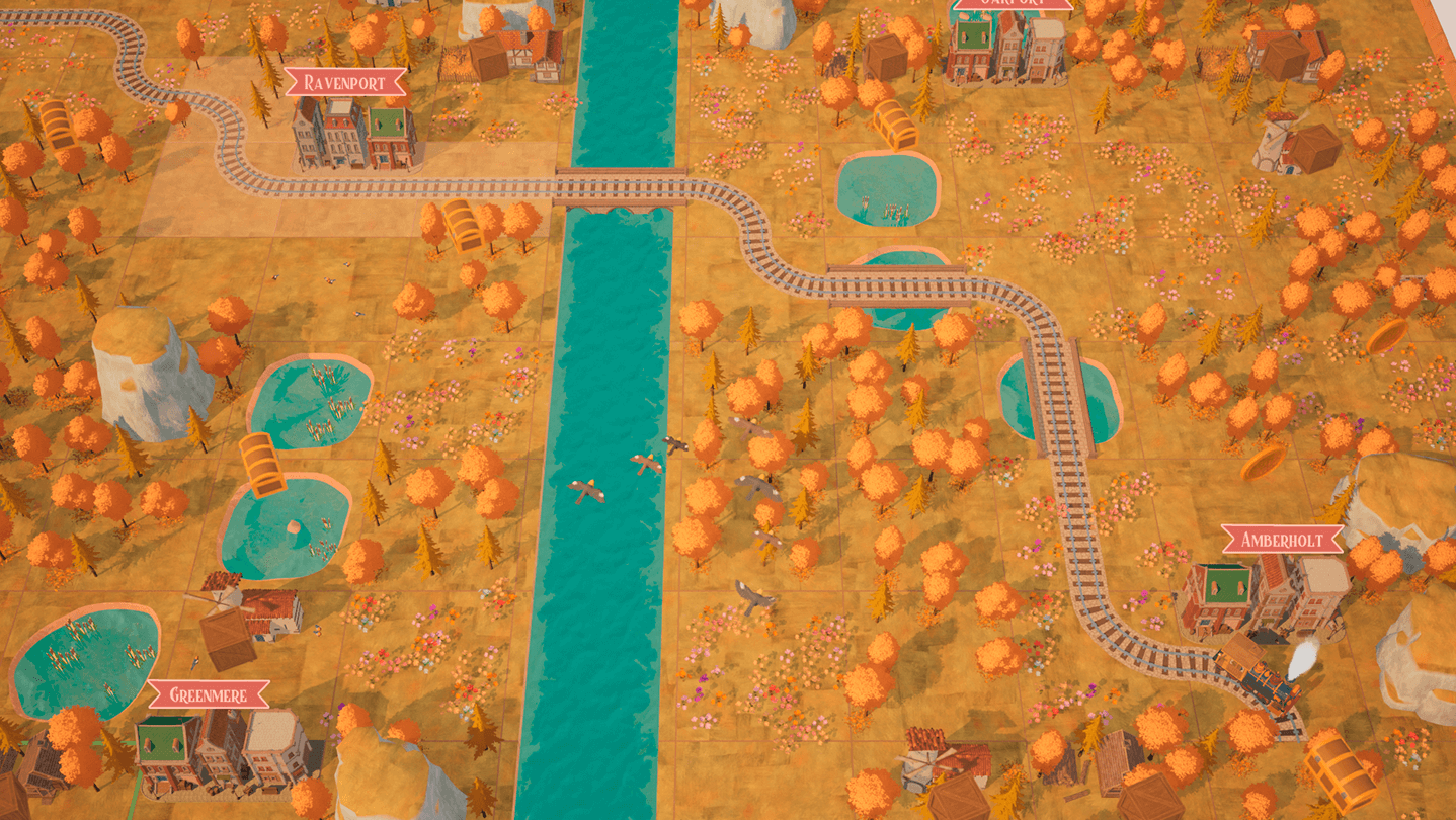 Build railway routes across a cozy tile-based map. Guide your train toward Amberfield while completing tasks along the way. Connect towns, deliver goods and cargo, transport passengers, and enjoy the freedom to shape your own journey.