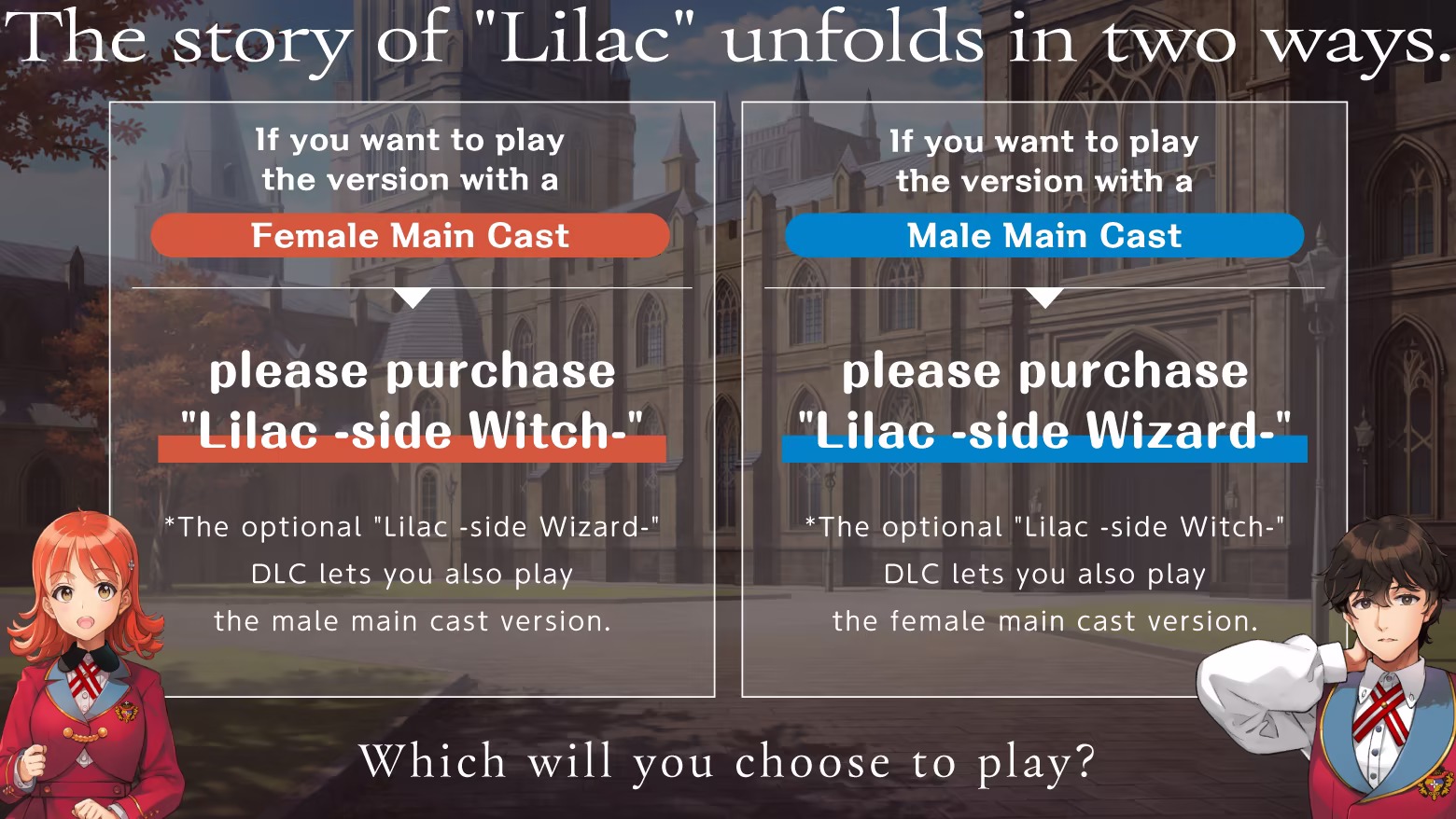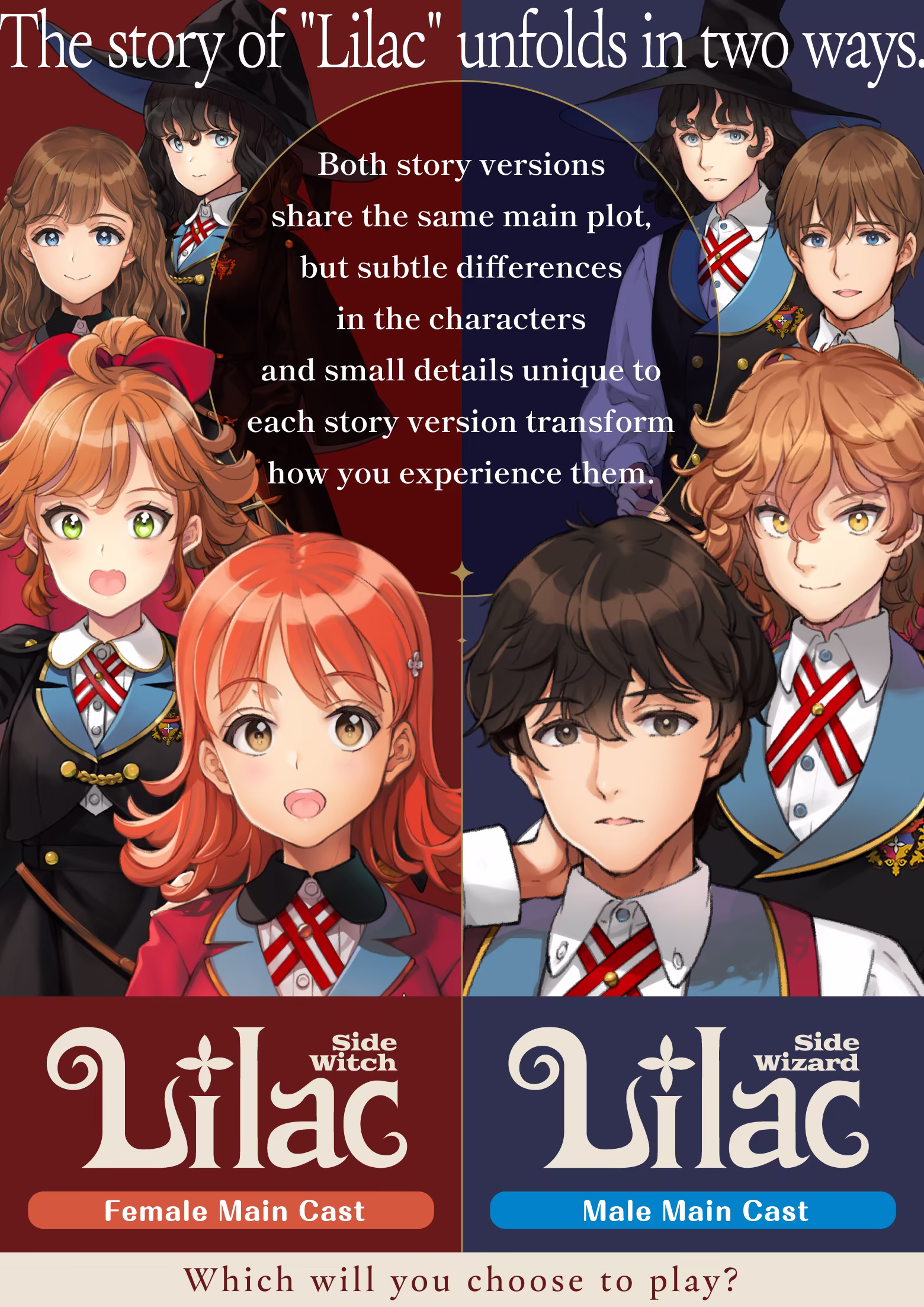 The female main cast version ("Lilac -side Witch-") and the male main cast version ("Lilac -side Wizard-") contain different characters and voices. There are also small details unique to each story version.