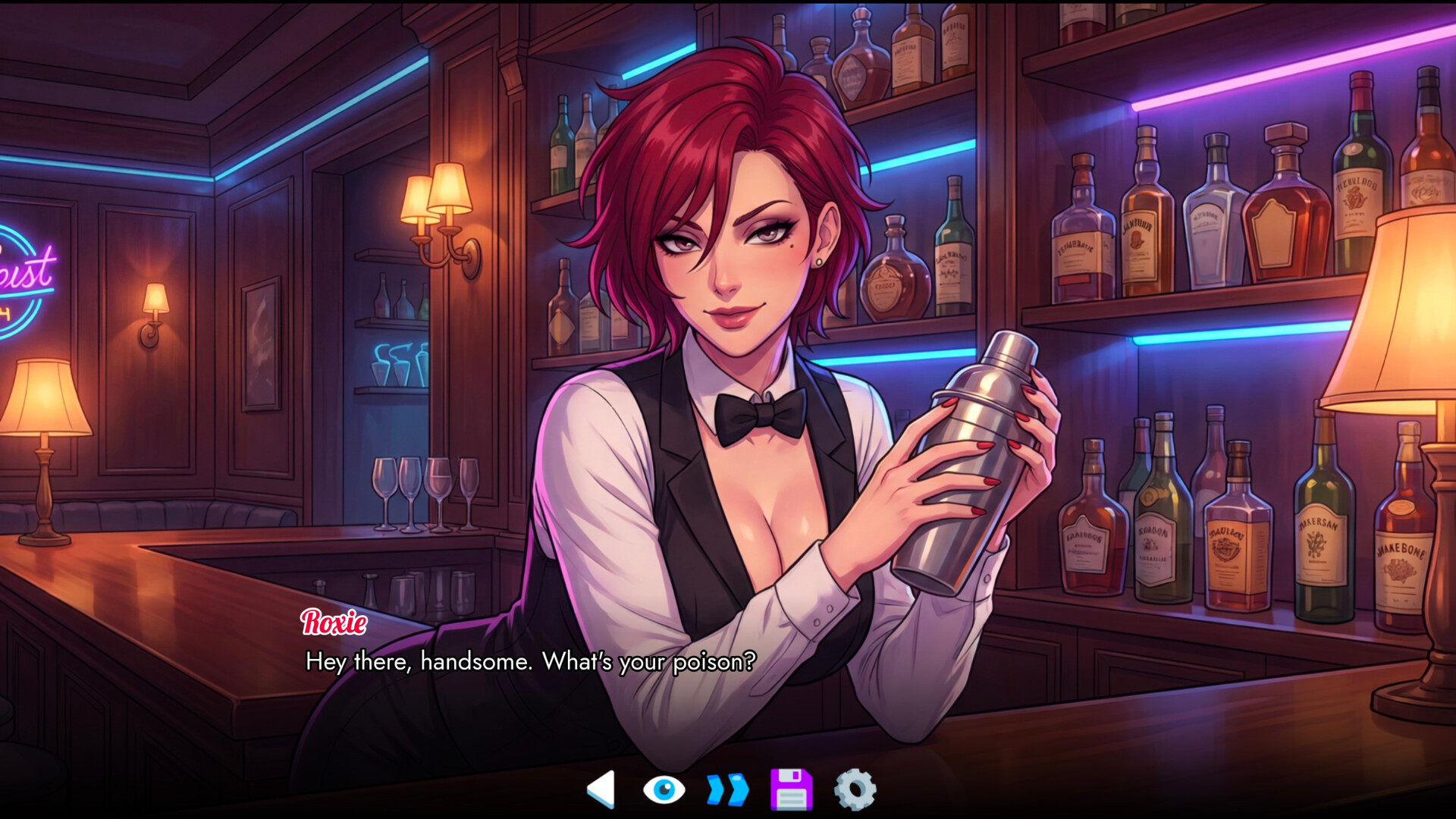 Roxie - The confident bartender who mixes drinks by day and makes memories by night.