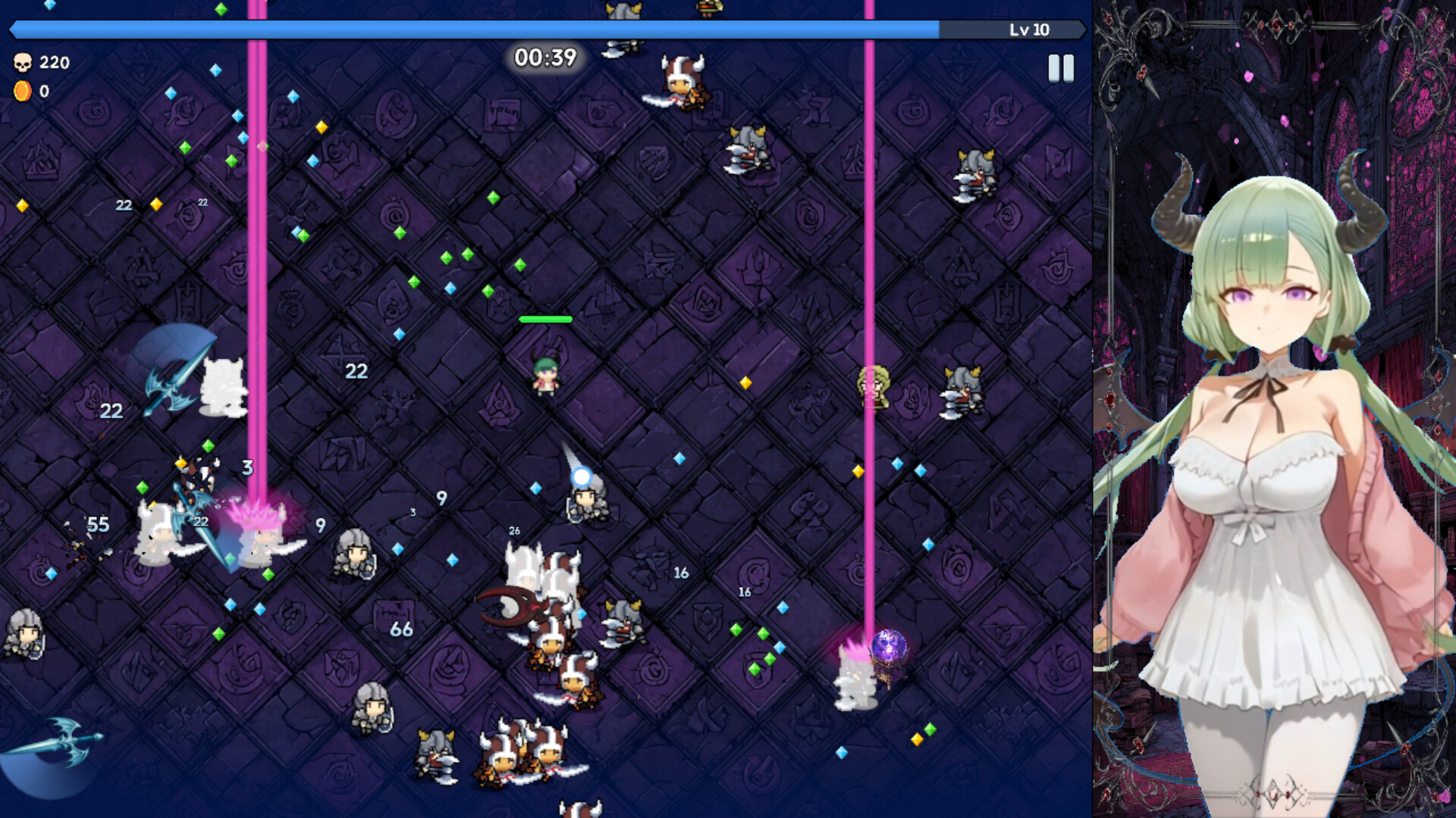 Take control of powerful succubi and utilize each character's unique skills to battle waves of human armies and monsters attacking from every direction. Your goal: survive for as long as possible. During combat, defeating enemies rewards you with experience items to level up and enhance your skills for that specific run. You can also collect coins that persist after the battle, allowing you to unlock permanent attribute upgrades and skill enhancements.
