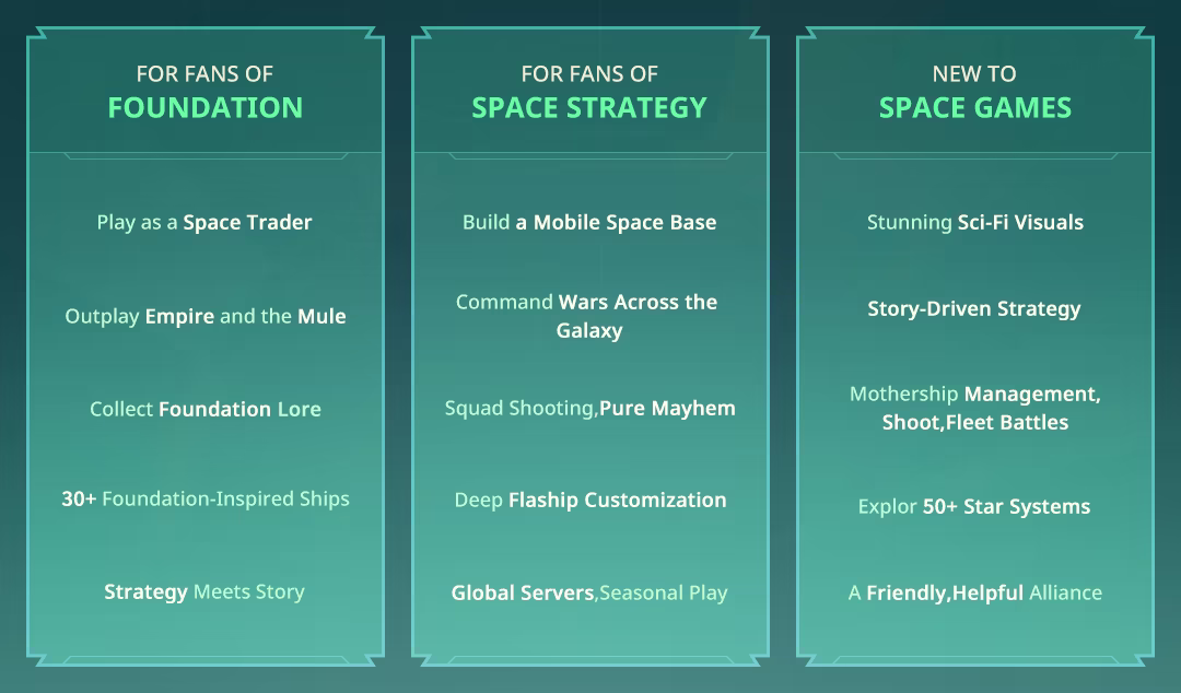 EMBARK NOW! Within the Foundation universe:Write Your Sci-Fi Legend • Build your Ideal Flagship • Build Trade Networks • Command Elite Fleets • Forge Your Galactic Destiny!